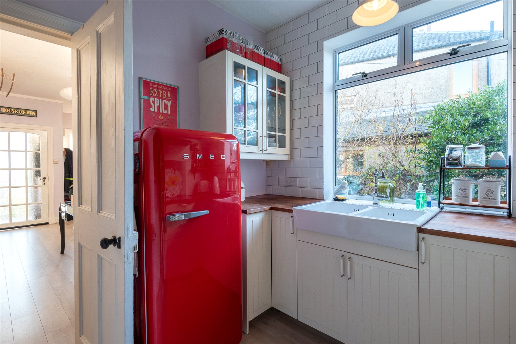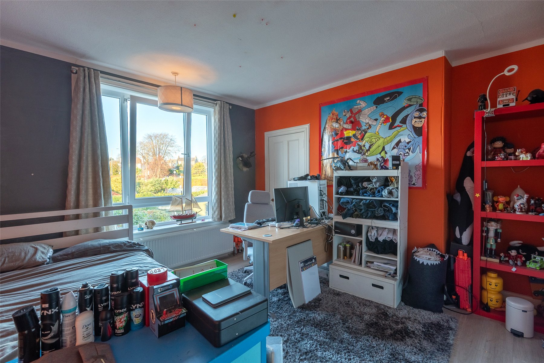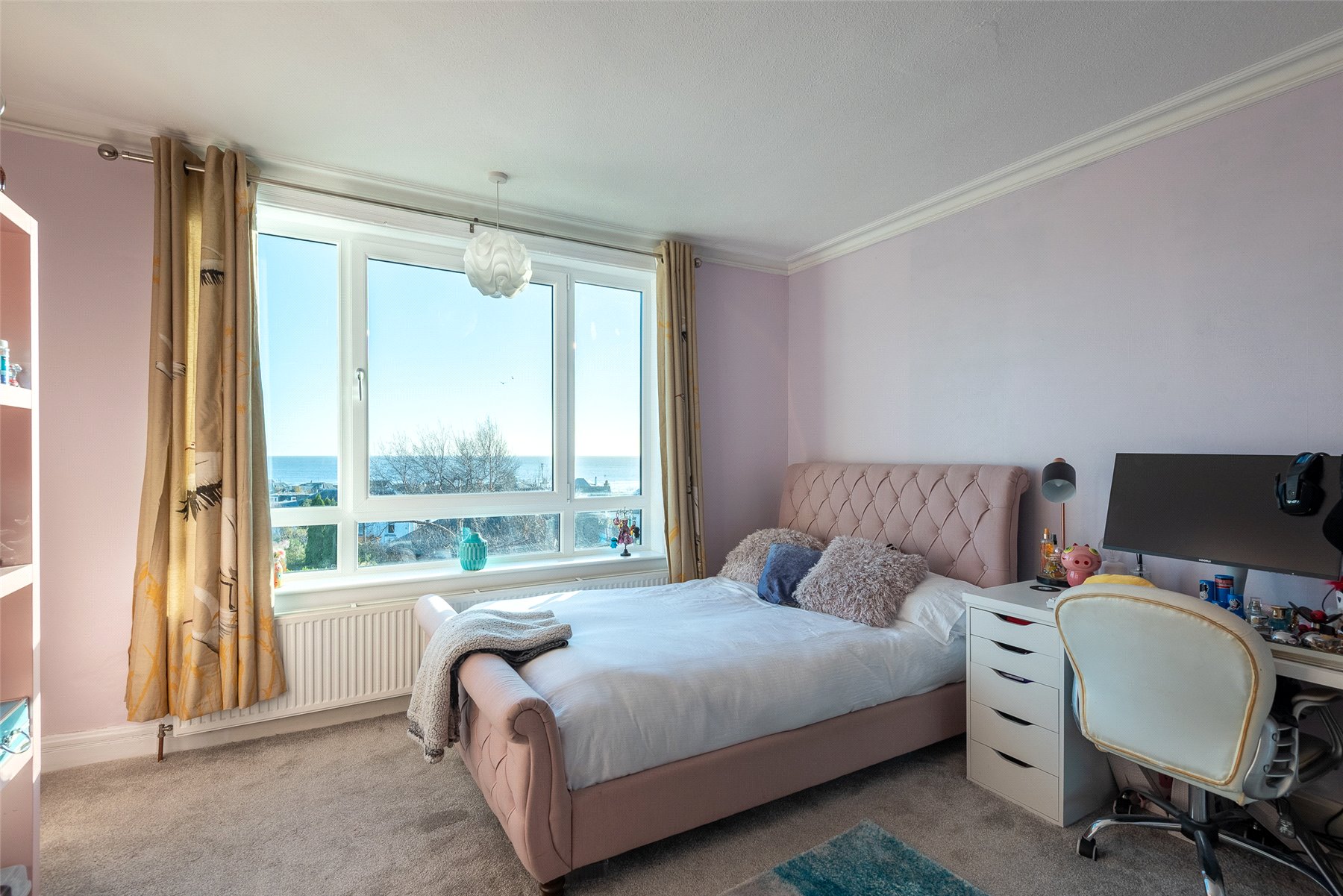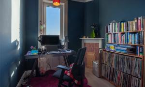 Upstairs, there are two further impressive double bedrooms, both with fitted storage, one of which enjoys stunning panoramic views over the Tay. A fourth bedroom is currently arranged as a home office, offering the perfect quiet workspace. The modern shower room is finished to a high standard and includes a walk-in shower.