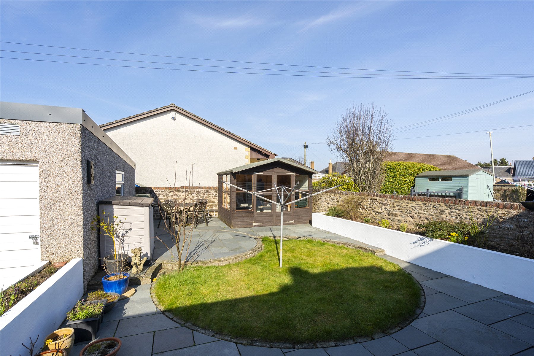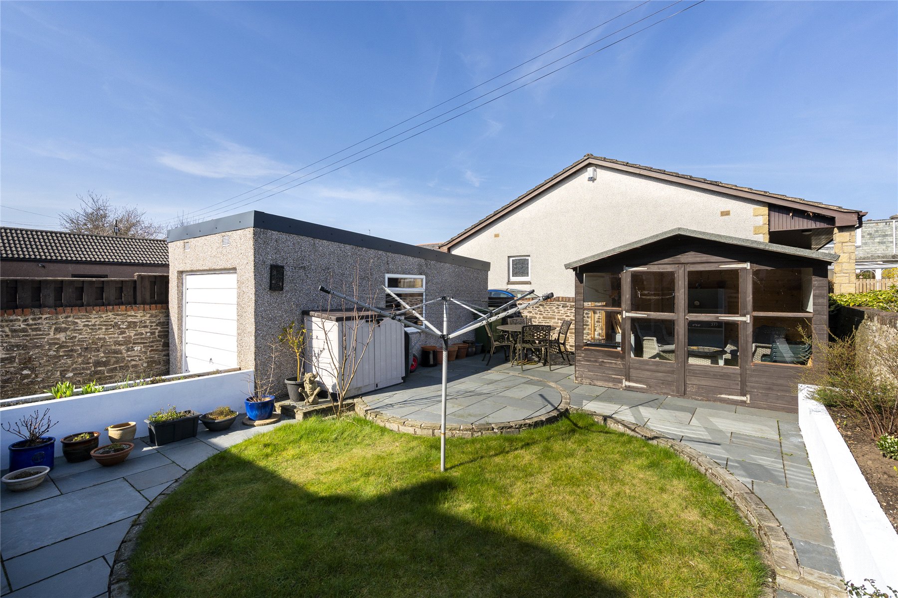 Externally there is a driveway to the front for multiple vehicles leading to the garage. The rear garden is attractively landscaped for easy maintenance, mainly laid to slabs with a lawn drying area, raised flower beds, and a fully powered summerhouse.