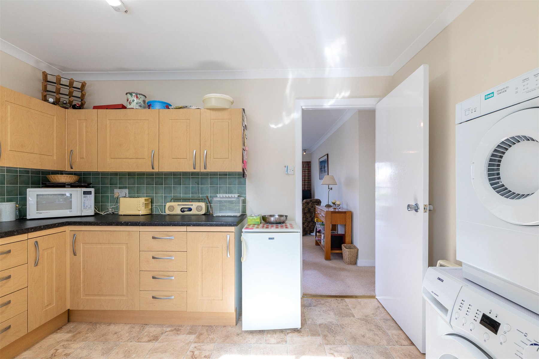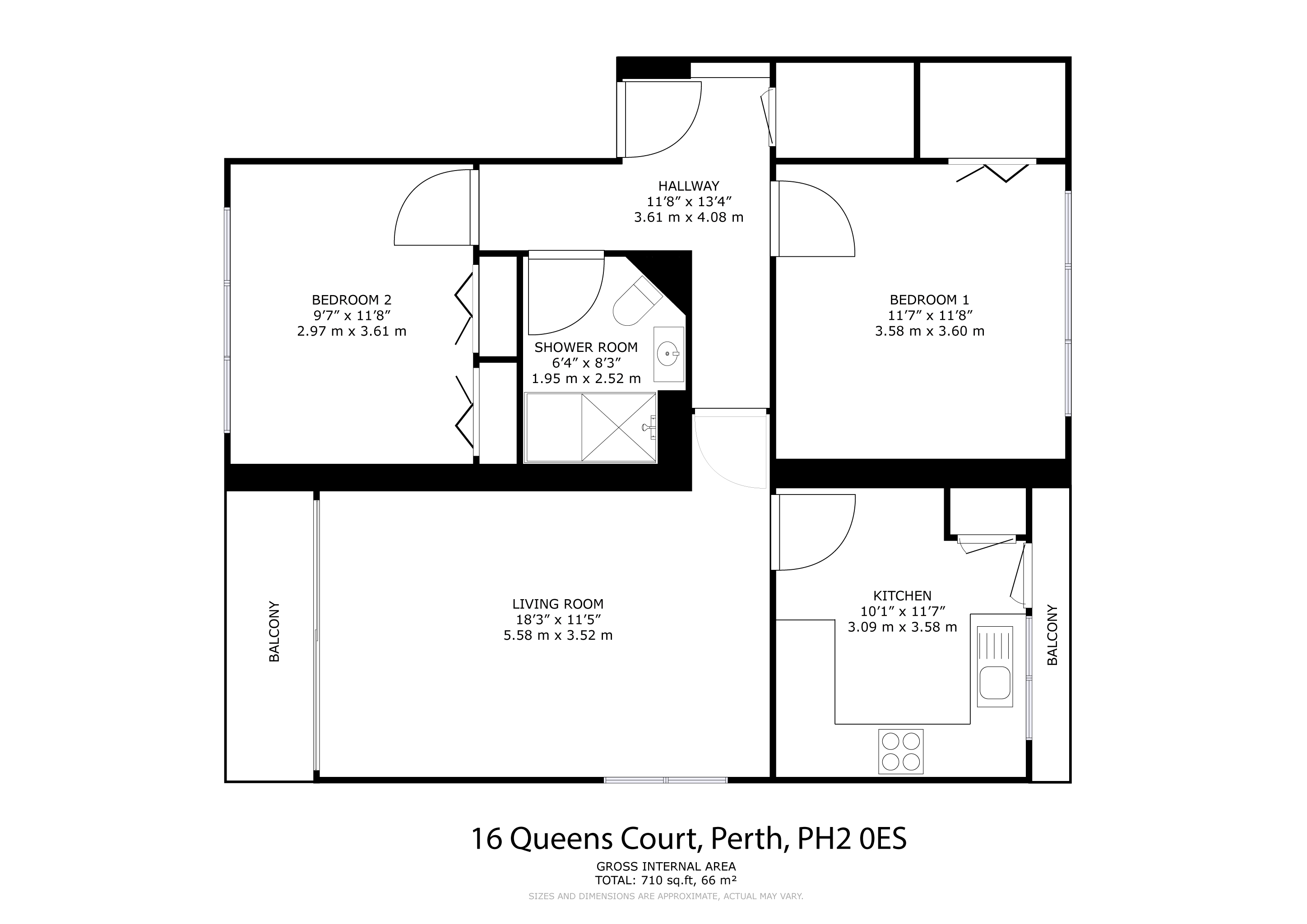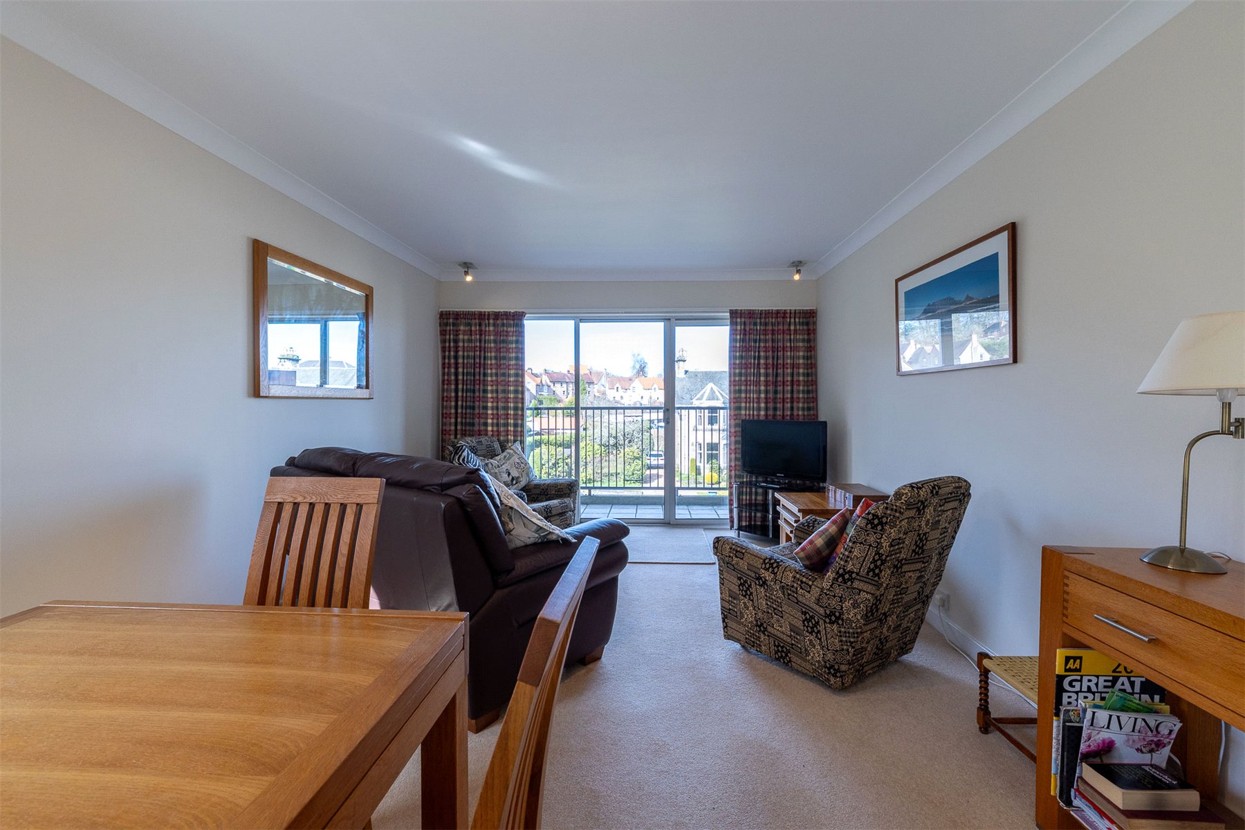 The property is entered into a hallway with a deep walk-in cupboard. The large dual aspect lounge with ample space for dining features sliding doors leading out onto the good-sized private balcony. Off the lounge is the kitchen, which is fitted with a comprehensive range of units, also included in the sale are a free-standing cooker, fridge, washing machine and dryer. There is a second balcony accessed from the kitchen. Both the bedrooms are doubles, one with fitted wardrobes and the other with a fantastic walk-in wardrobe. The recently upgraded shower room comprises a large walk in enclosure, vanity wash hand basin, WC, heated towel rail and under floor heating. Externally there are well-kept communal garden grounds to the rear, a private garage and additional residents parking. Craigie is a popular residential area of Perth, sought-after for its close proximity to the City Centre as well as other amenities including shops, restaurants, salons, Perth Leisure Pool and two reputable Primary Schools. For the commuter, Perth Bus and Train Stations are within walking distance for quick links into Dundee, Edinburgh, Glasgow and beyond.