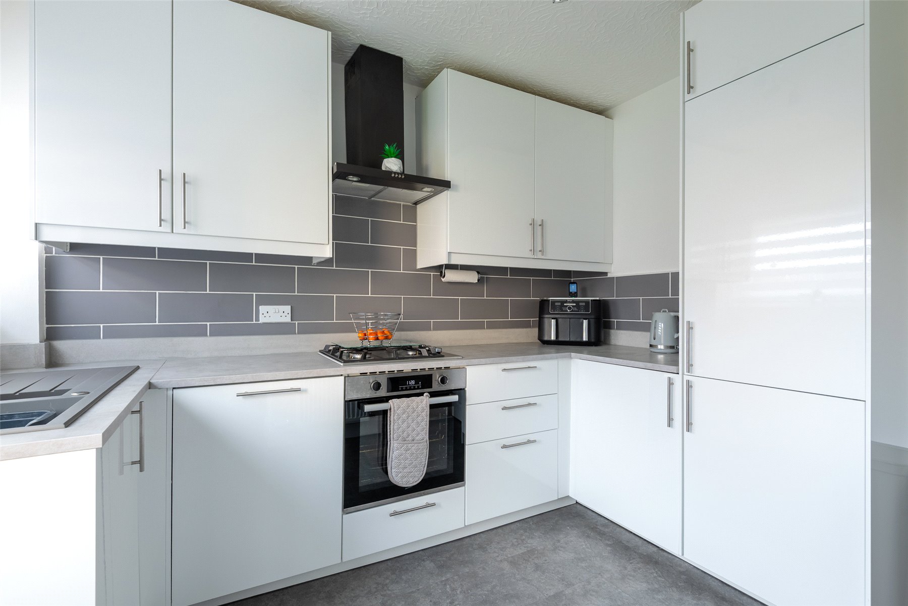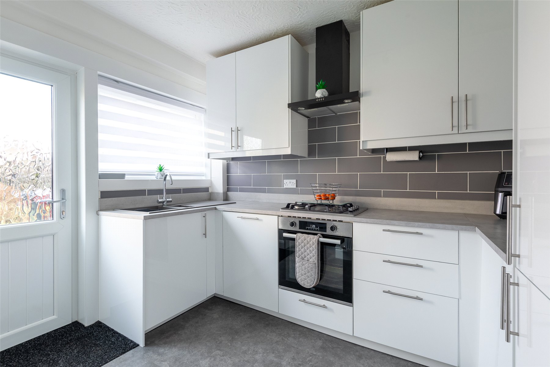 The accommodationcomprisesan entrance vestibule, hall with large understairs cupboard, a good-sized lounge/dining room with windows to the east and west, kitchen with integrated hob, oven, extractor hood, dishwasher, fridge and freezer. A shelved utility cupboard off provides space for a washing machine and dryer, three bedrooms, one of which has built-in wardrobes, and a bathroom with thermostatic shower. Outside to the rear the garden has lawn and borders, garden shed and gate to the side, whilst the front garden is laid to paving and provides an excellent spot in which to relax and enjoy the evening sun. Included in the sale are all fitted floor coverings along with integrated kitchen appliances as detailed. Numerous items of household furniture may be available by separate negotiation.