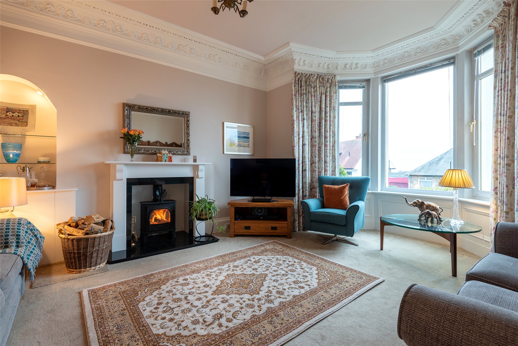 The property has been lovingly maintained by the current owners and offers versatile accommodation spread over two floors. On the ground floor there is a vestibule, hallway and a bright and spacious lounge with bay window and wood burning stove. There is a lovely fitted kitchen with integrated appliances which leads to a family room/breakfast room. The separate dining room can be utilised as a fifth bedroom. A modern shower room completes the ground floor. Upstairs there is a spacious principal bedroom with bay window with lovely views towards the River Tay and feature fireplace. There are three further bedrooms, two of which have built in wardrobes, and family bathroom. Benefits include double glazing, gas central heating, attic space and a number of beautiful original features.