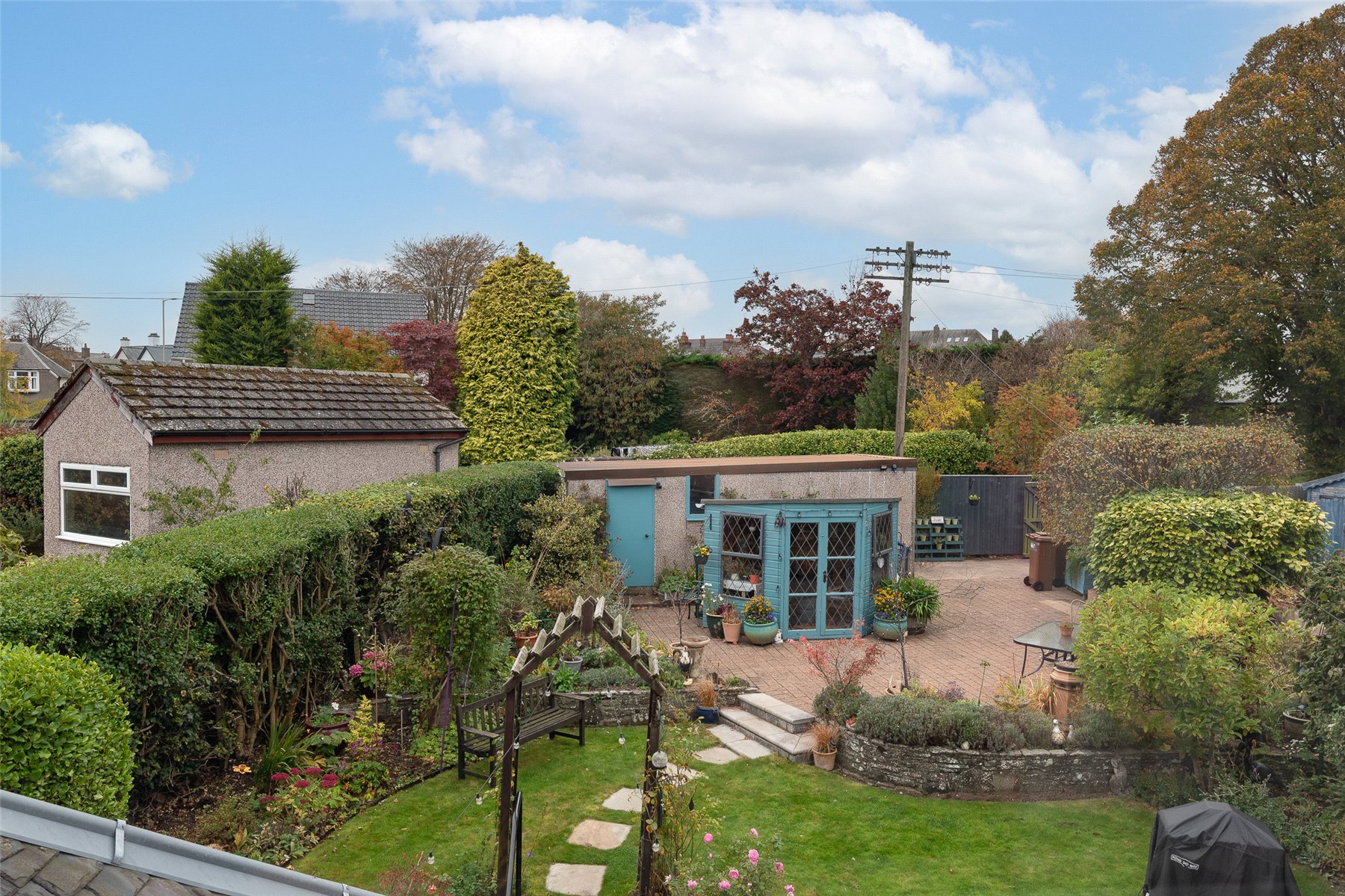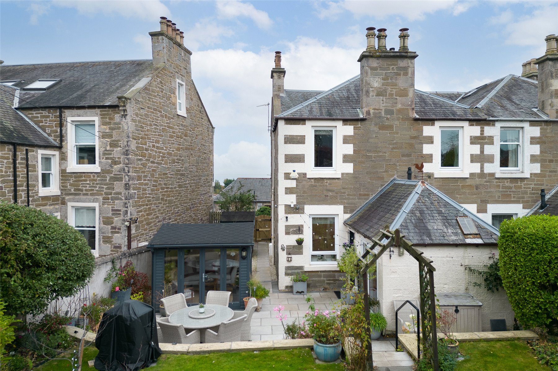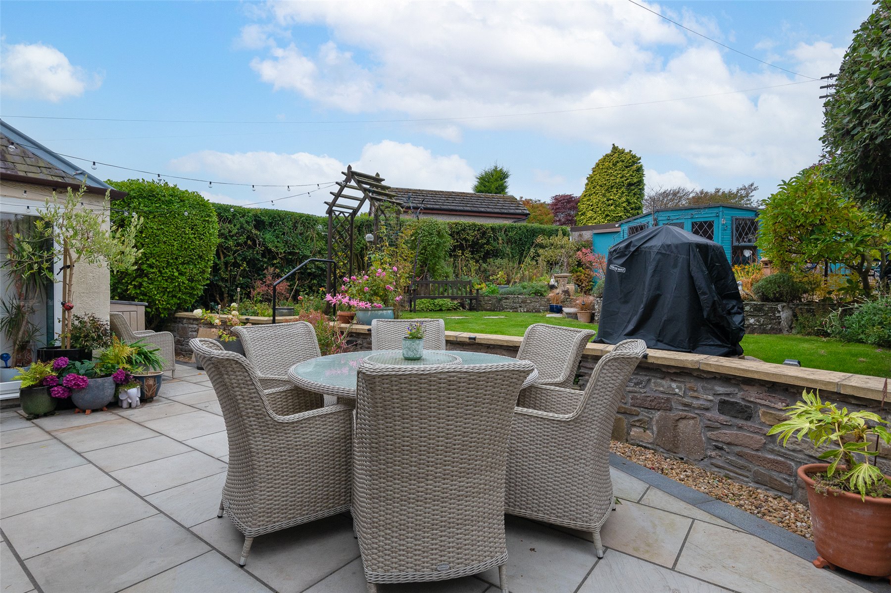 Externally the garden to the front is laid with a combination of mature plantings and shrubs. The rear garden has been beautifully landscaped and laid with a combination of lawn and patios areas and a number of plantings. On the lower patio area there is a cedar wood garden room which is insulated and has electricity. This could be used for a home office. There is a summerhouse at the top of the garden. The detached double tandem garage can be accessed at the rear of the property.