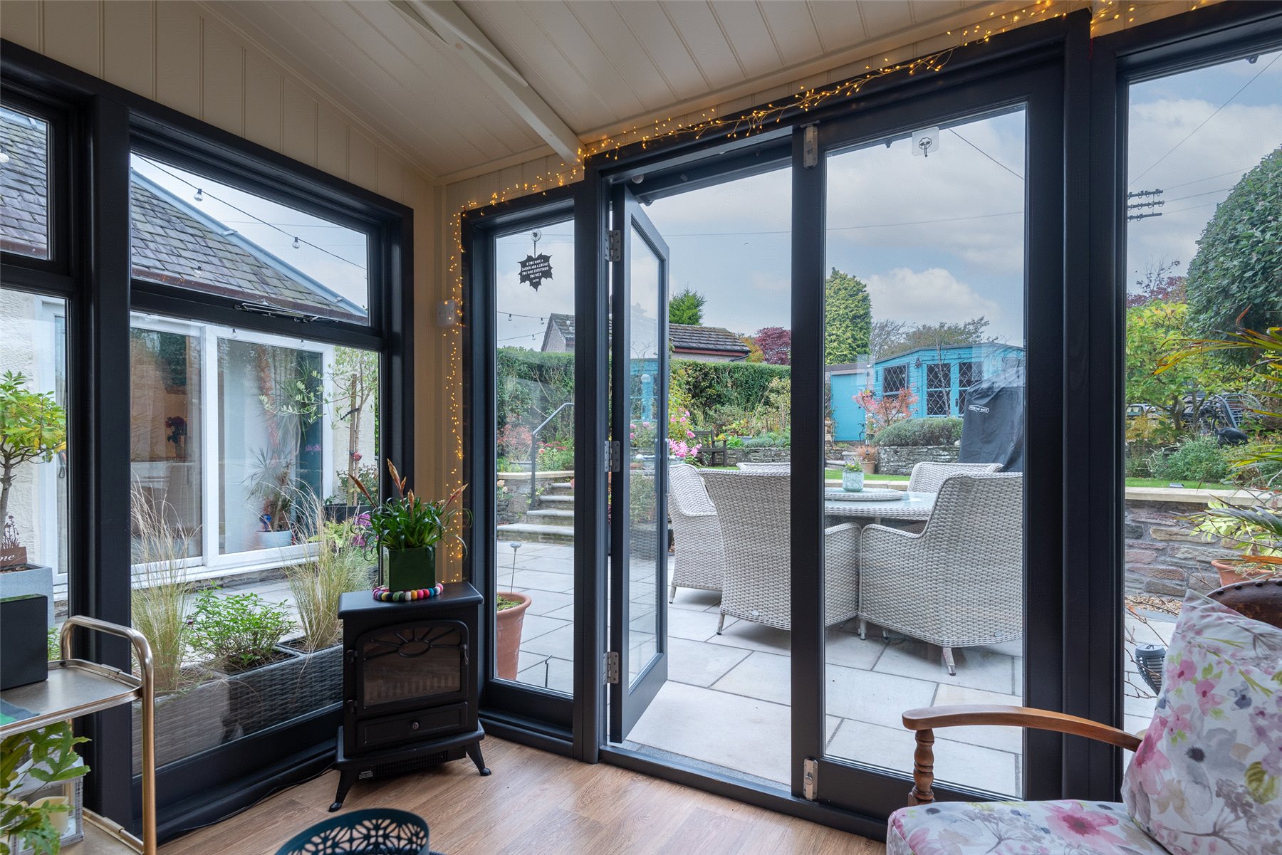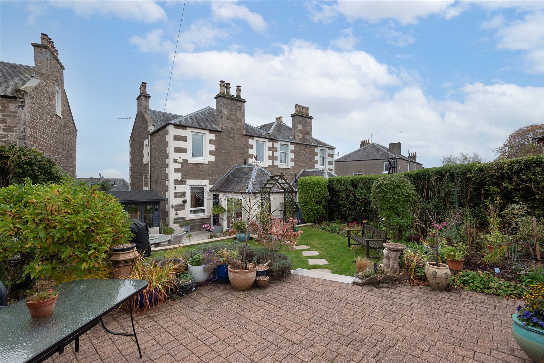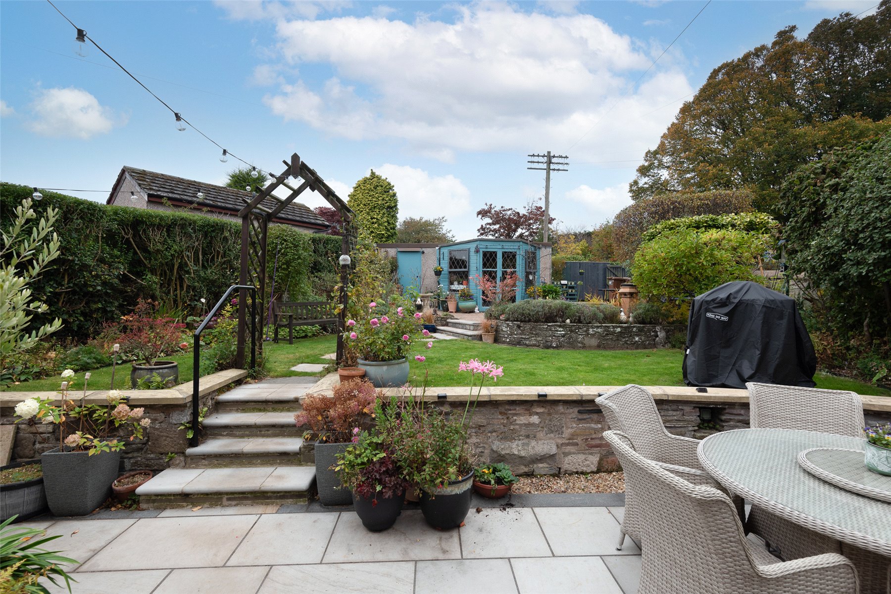 Externally the garden to the front is laid with a combination of mature plantings and shrubs. The rear garden has been beautifully landscaped and laid with a combination of lawn and patios areas and a number of plantings. On the lower patio area there is a cedar wood garden room which is insulated and has electricity. This could be used for a home office. There is a summerhouse at the top of the garden. The detached double tandem garage can be accessed at the rear of the property.