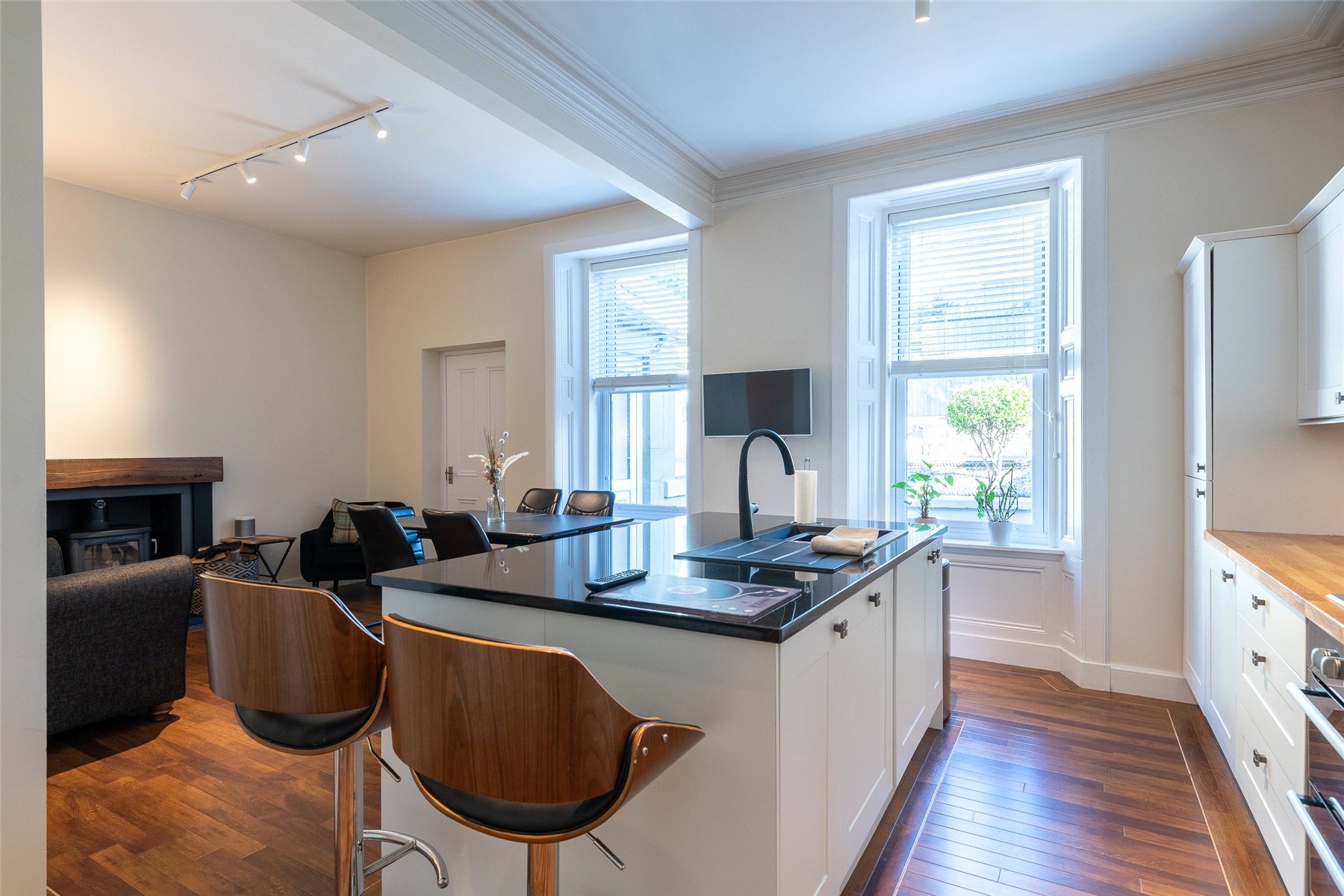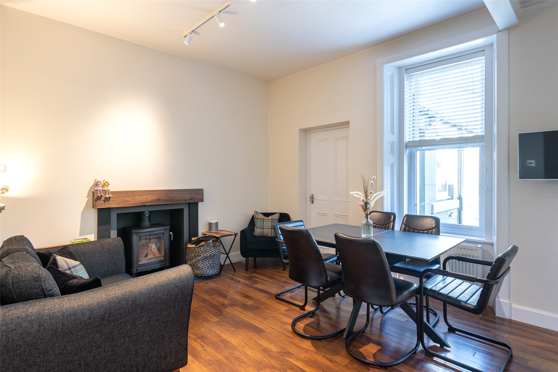 The property is offered to the market in move in condition and comprises: vestibule, hallway, bright and spacious lounge with bay window and feature fireplace. There is a large open plan kitchen/diner/family room with a number of integrated appliances and a wood-burning stove. The utility room and WC complete the ground floor. Upstairs the principal bedroom offers uninterrupted views across the River Tay and has built in wardrobes. There are two further good sized bedrooms and a beautiful, recently fitted family bathroom with separate shower unit.
