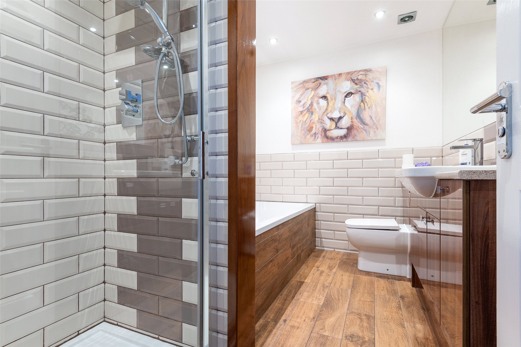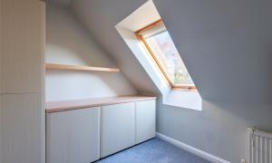 The ground floor also includes a highly flexible guest bedroom with a connected dressing room or utility area created through the thoughtful garage conversion, alongside a modern family bathroom with separate bath and shower. Upstairs, the primary bedroom offers excellent built in storage and a stylish ensuite shower room. A further spacious double bedroom and a single bedroom, both with integrated storage, complete the upper level.