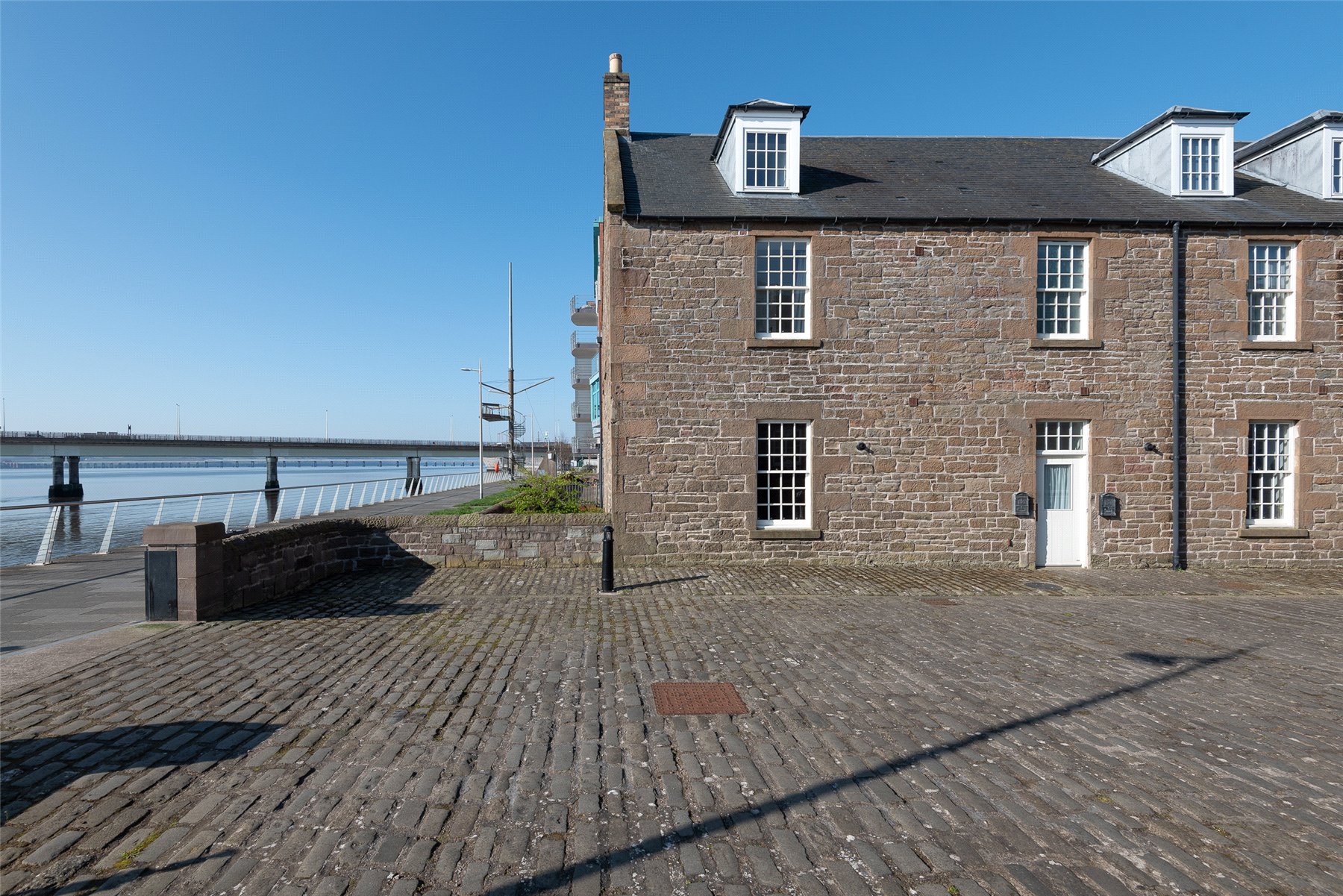The accommodation can be entered through a shared doorway at the front of the villa into the south facing open plan lounge/ dining /kitchen which forms the hub of the home. There is also a private rear door into a small courtyard garden and a cloakroom/WC. Moving to the first floor you will find the fabulous primary bedroom featuring dual aspect windows, a wall of fitted wardrobes and an en suite shower room. There is a further double bedroom currently being used as an upper lounge making the most of the stunning views and a family bathroom with shower over the bath. On the top floor you will find two further double bedrooms both with a different view aspect and a second bathroom.