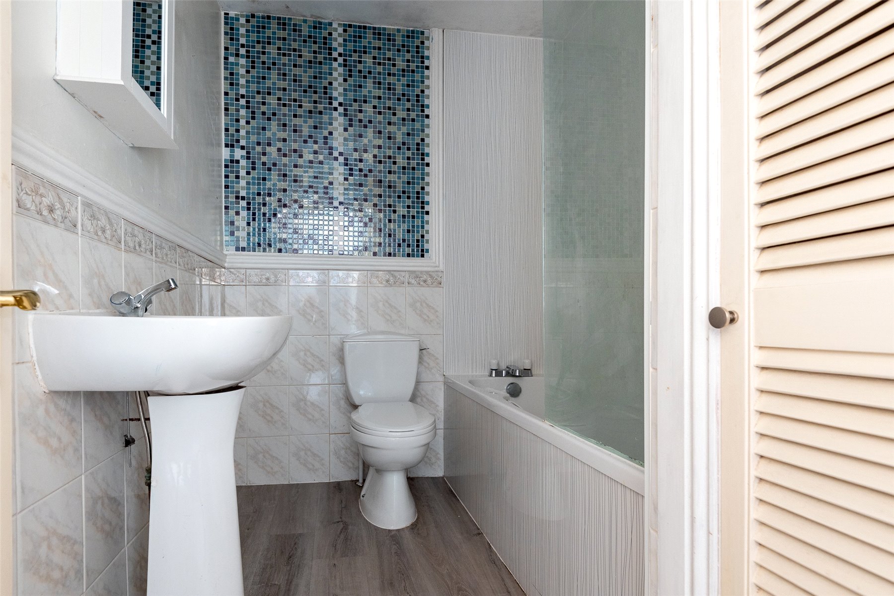 The accommodation comprises a welcoming hallway leading to a bright and generously proportioned lounge with ample space for dining. The fitted kitchen provides plenty of counter and cupboard space, ideal for everyday living. Both bedrooms are large doubles and benefit from excellent fitted wardrobes, while the bathroom features a modern white suite with a shower over the bath.