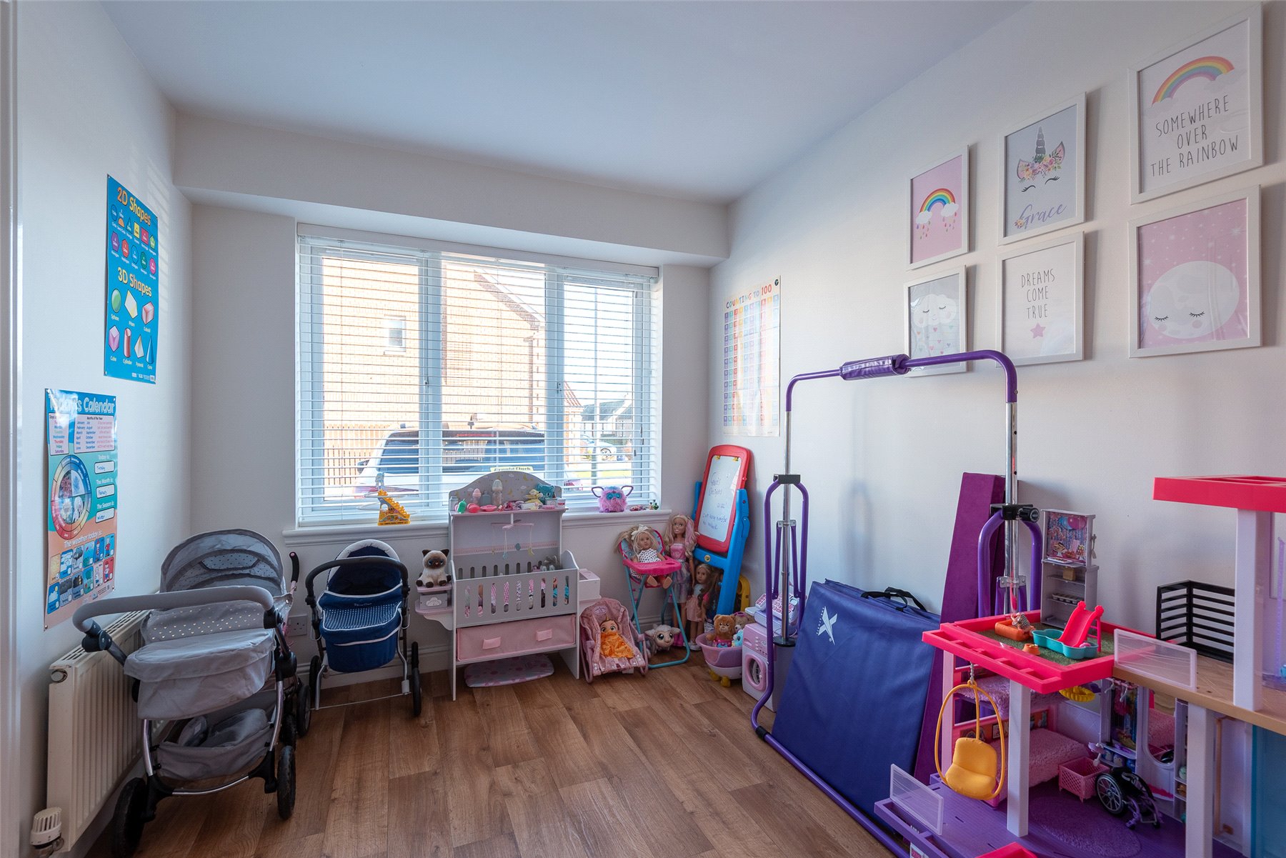 The accommodation offers versatile accommodation spread over two levels and can be adapted to suit the buyers requirements. On the ground floor there is a bright and spacious lounge/diner and dining kitchen. The garage has been converted to offer a multifunctional room which is currently utilised as a playroom but can also be used as a four bedroom. The large cupboard in this room is a handy utility store. Upstairs the principal bedroom has built in wardrobes and ensuite shower room. There are two further good sized bedrooms both with built in wardrobes, and family bathroom with shower over the bath. Benefits include double glazing, gas central heating and attic space.