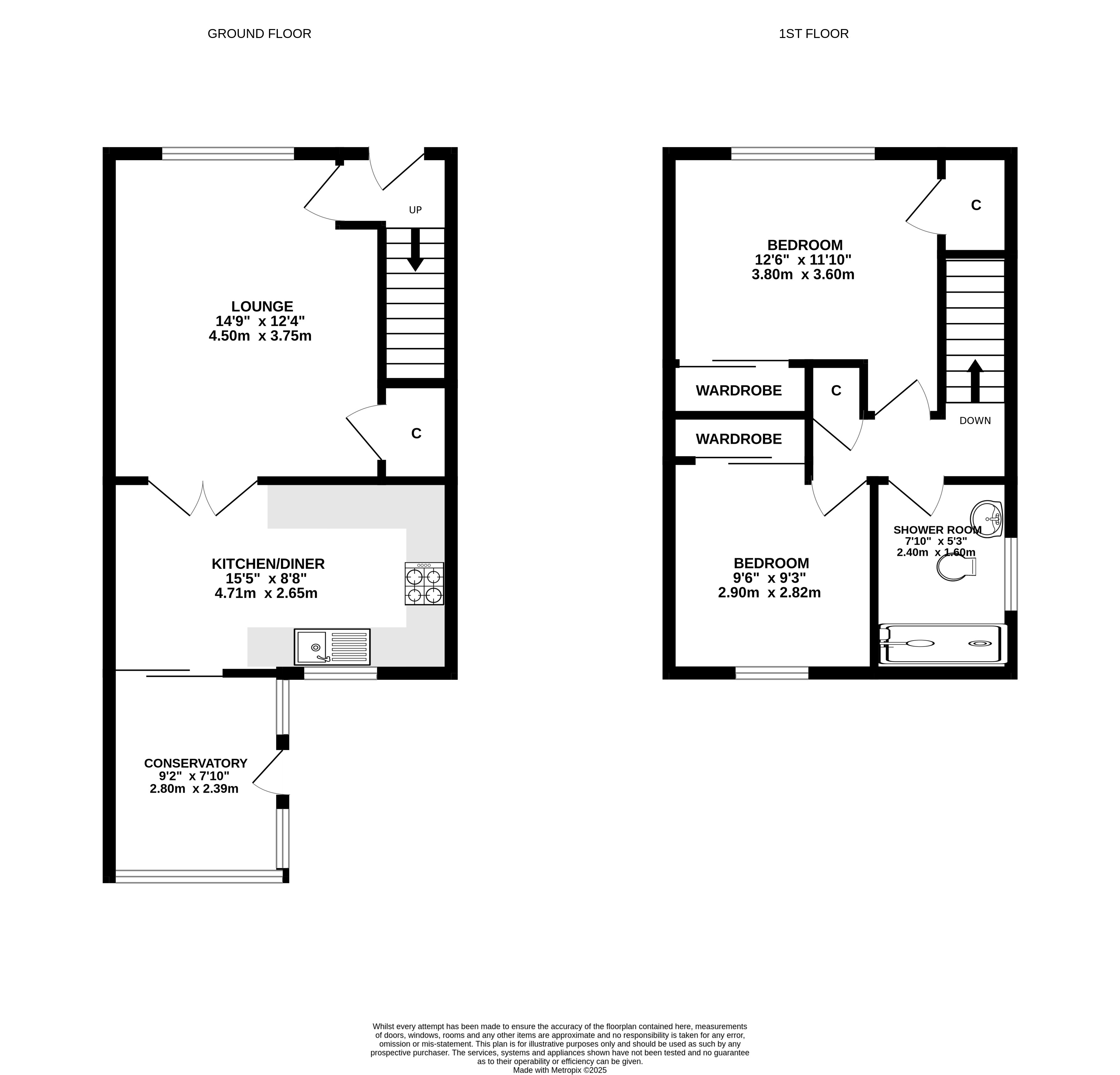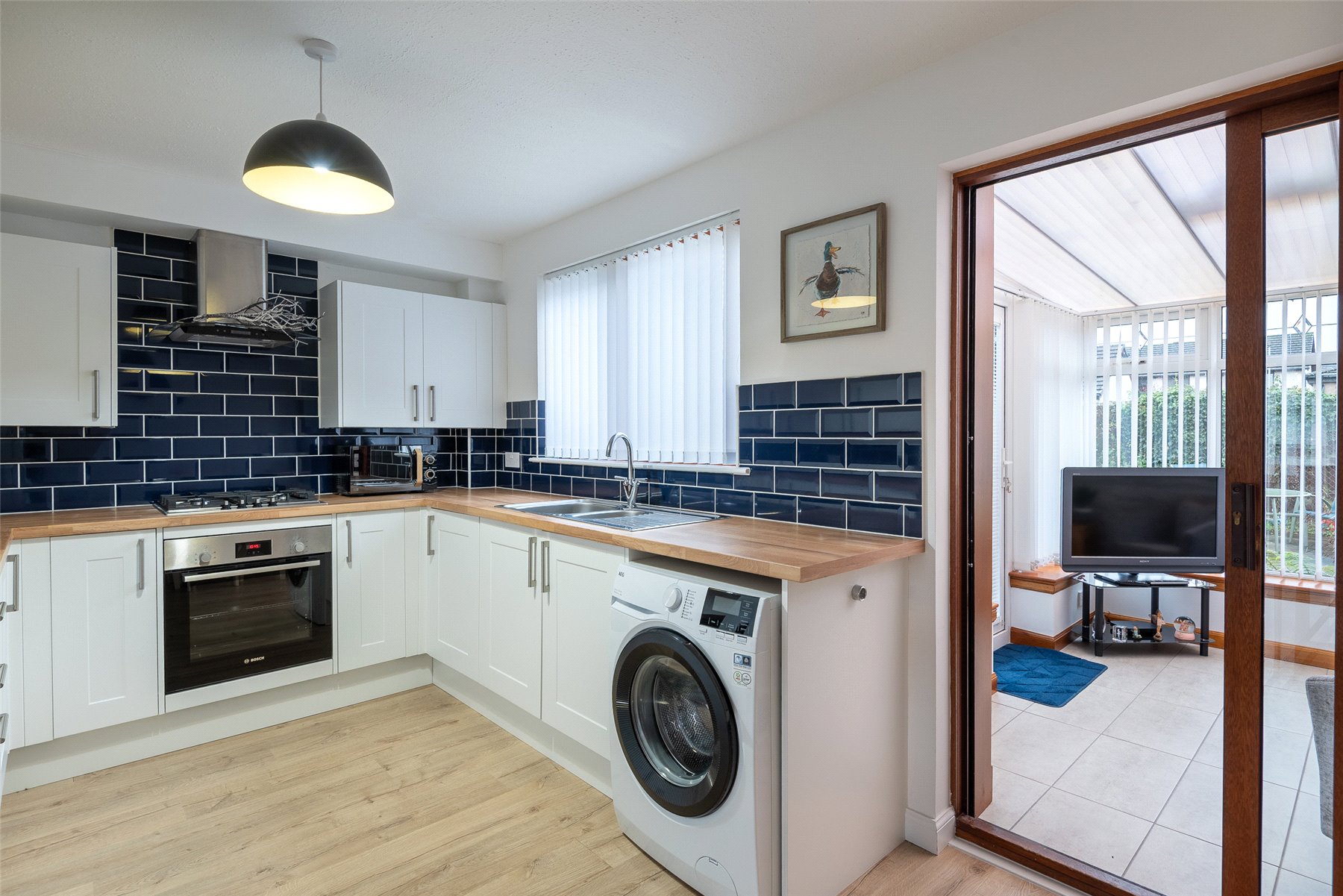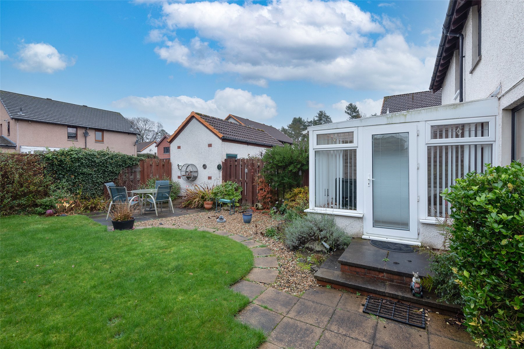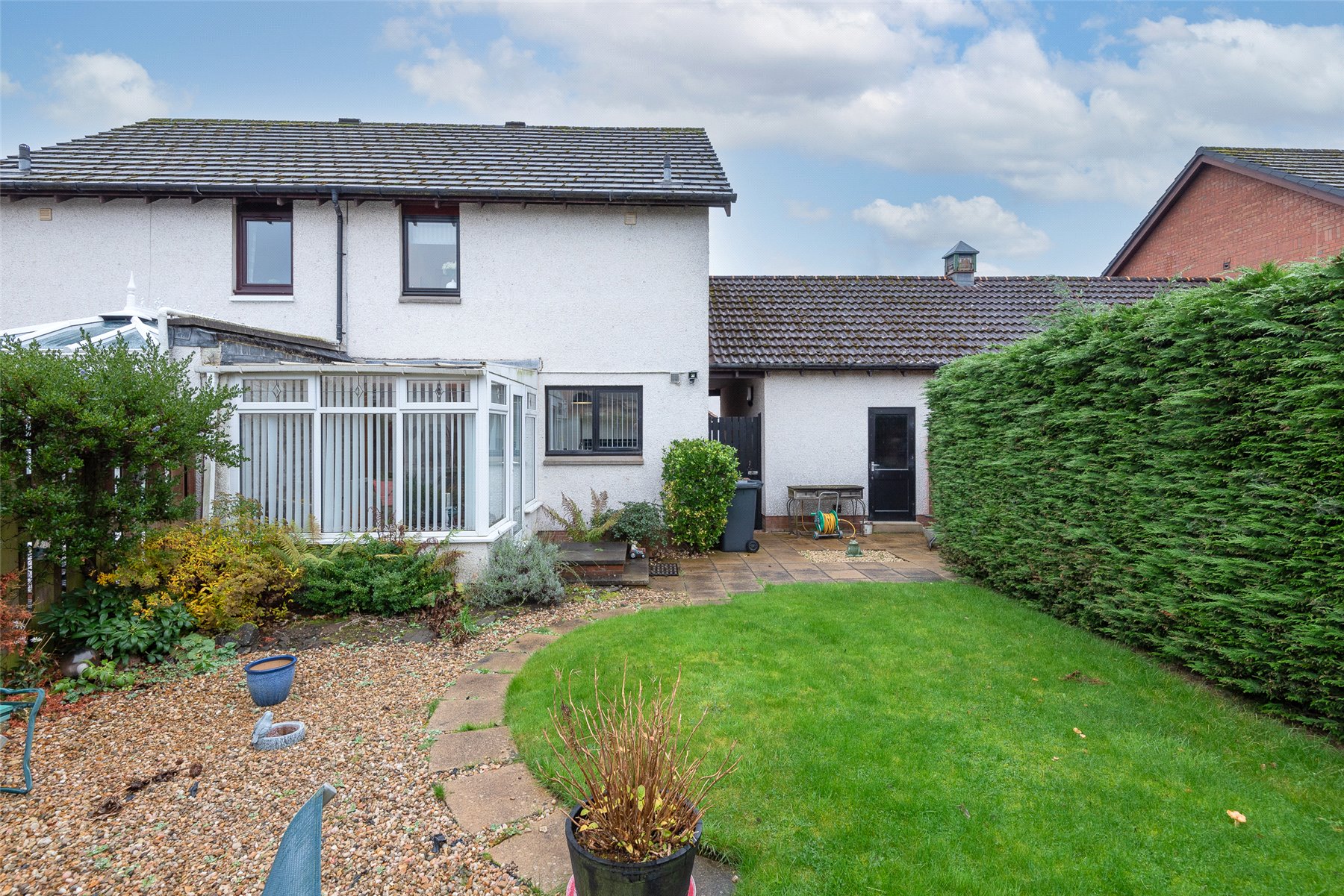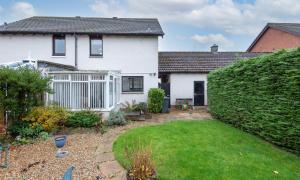The accommodation on the ground floor comprises a generous lounge with cupboard below the stairs, kitchen/dining room with integrated hob, oven and extractor hood, and space for fridge-freezer and washing machine. There is ample space for a table and chairs and doors lead to the bright conservatory. On the upper floor there are two bedrooms, both of which have fitted wardrobes and a newly installed shower room with wet wall lining and thermostatic shower. Outside to the front of the property the garden is laid with lawn and well stocked borders and a driveway providing off-street parking leading to the garage. The fully enclosed rear garden is laid mainly with paved patio areas, lawn and pretty borders. Included in the sale are all fitted floorcoverings, blinds where fitted, along with the integrated kitchen appliances as detailed. Other kitchen white goods and items of household furniture may be available by separate negotiation.