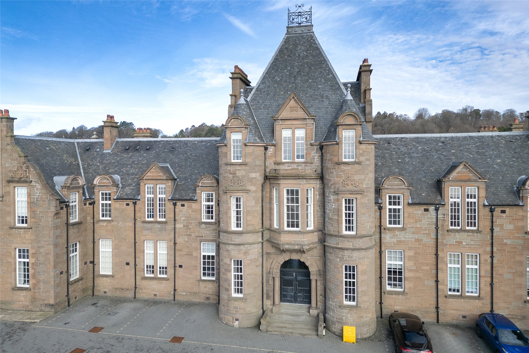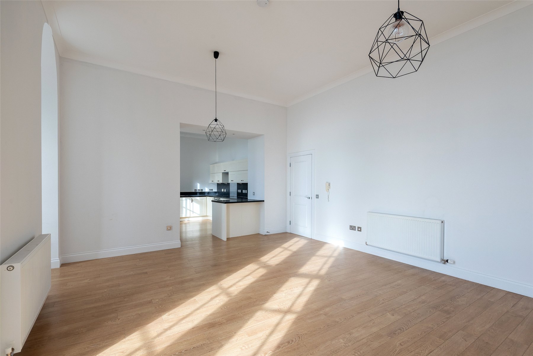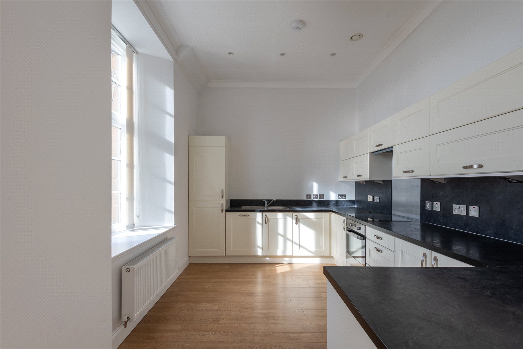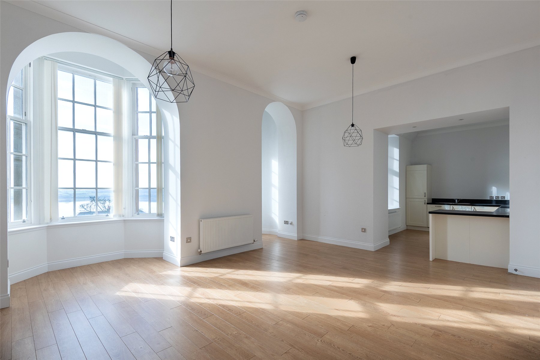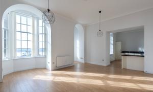 Apartment No. 3 is located on the first floor of the main building and offers contemporary accommodation across one level with superb views from the living space. The accommodation comprises a bright south facing lounge/dining/kitchen with superb bay window and corner feature ideal for a table and chairs, principal bedroom with fitted wardrobes and en suite shower room, further double bedroom and the family bathroom with shower over the bath. The list of attributes include gas central heating, double glazing and secure entry system. Included in the sale are all carpets, floorcoverings and blinds where fitted along with the integral kitchen appliances.