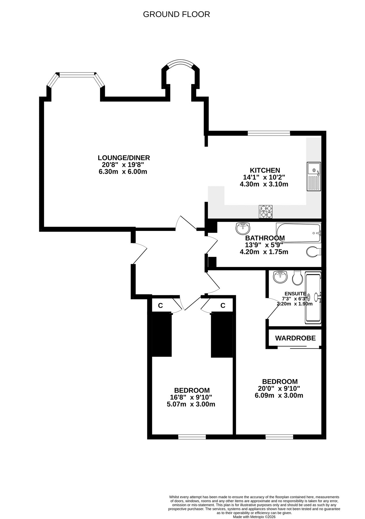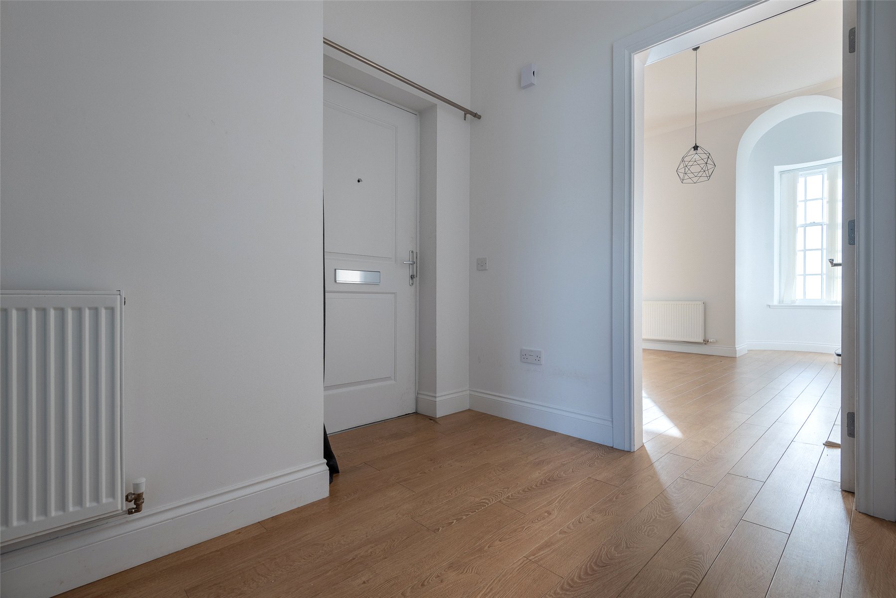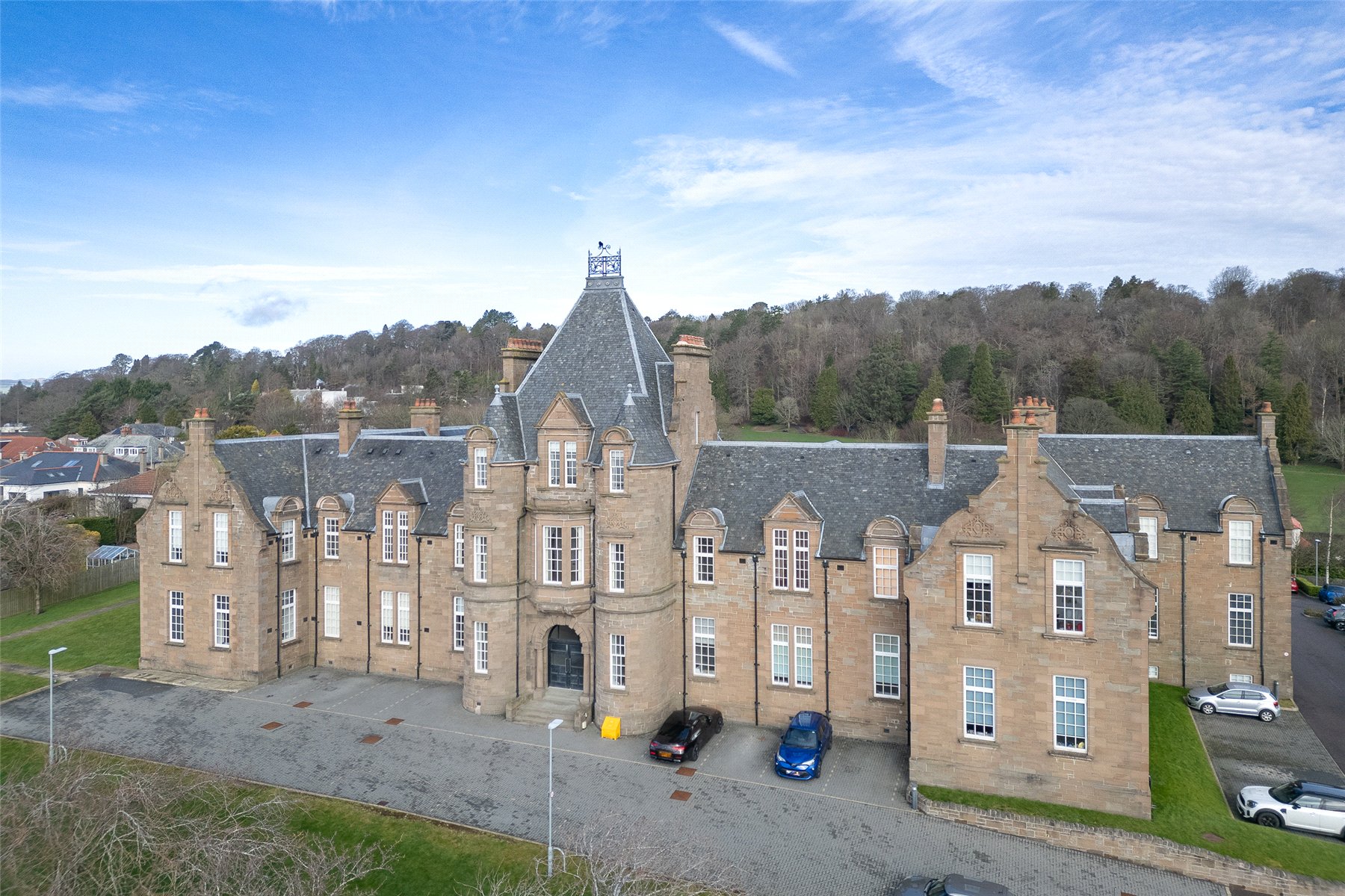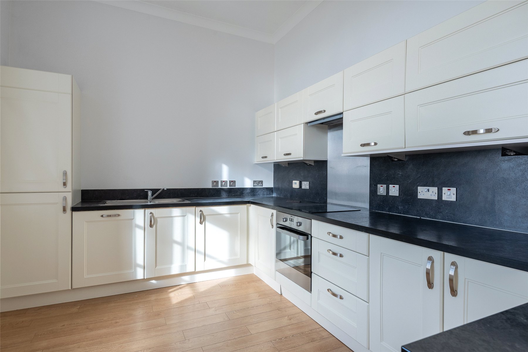 Apartment No. 3 is located on the first floor of the main building and offers contemporary accommodation across one level with superb views from the living space. The accommodation comprises a bright south facing lounge/dining/kitchen with superb bay window and corner feature ideal for a table and chairs, principal bedroom with fitted wardrobes and en suite shower room, further double bedroom and the family bathroom with shower over the bath. The list of attributes include gas central heating, double glazing and secure entry system. Included in the sale are all carpets, floorcoverings and blinds where fitted along with the integral kitchen appliances.