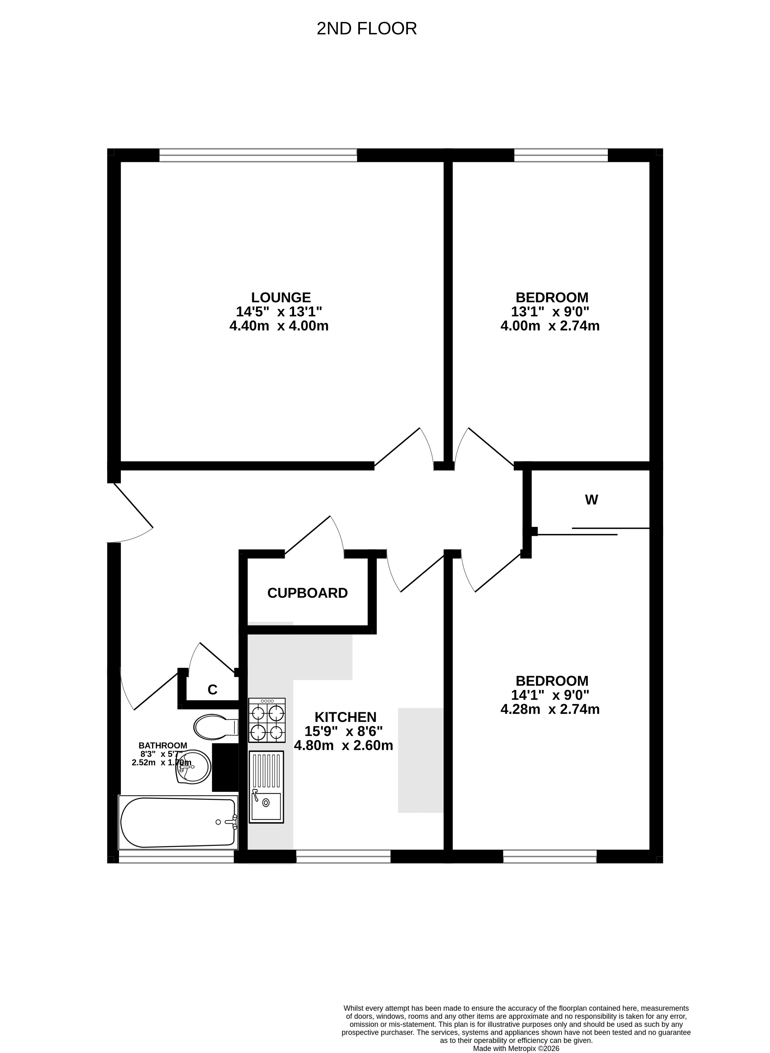 The accommodationcomprisesan entrance hall with all accommodation leading off, a good-sized lounge,kitchen with integrated hob, oven and extractor, plumbing for a washing machine and space for a fridge freezer, two double bedroomsandbathroom.