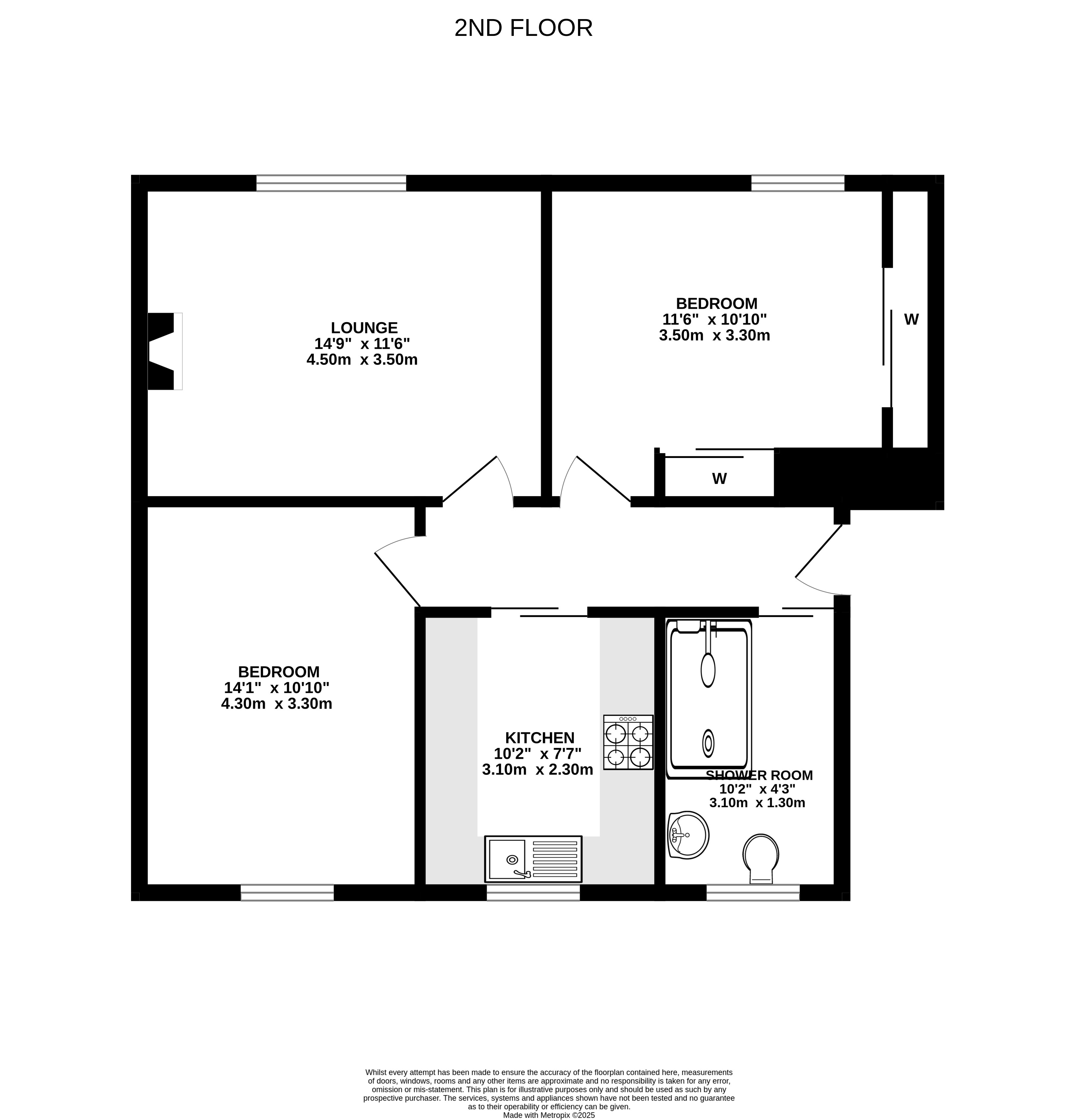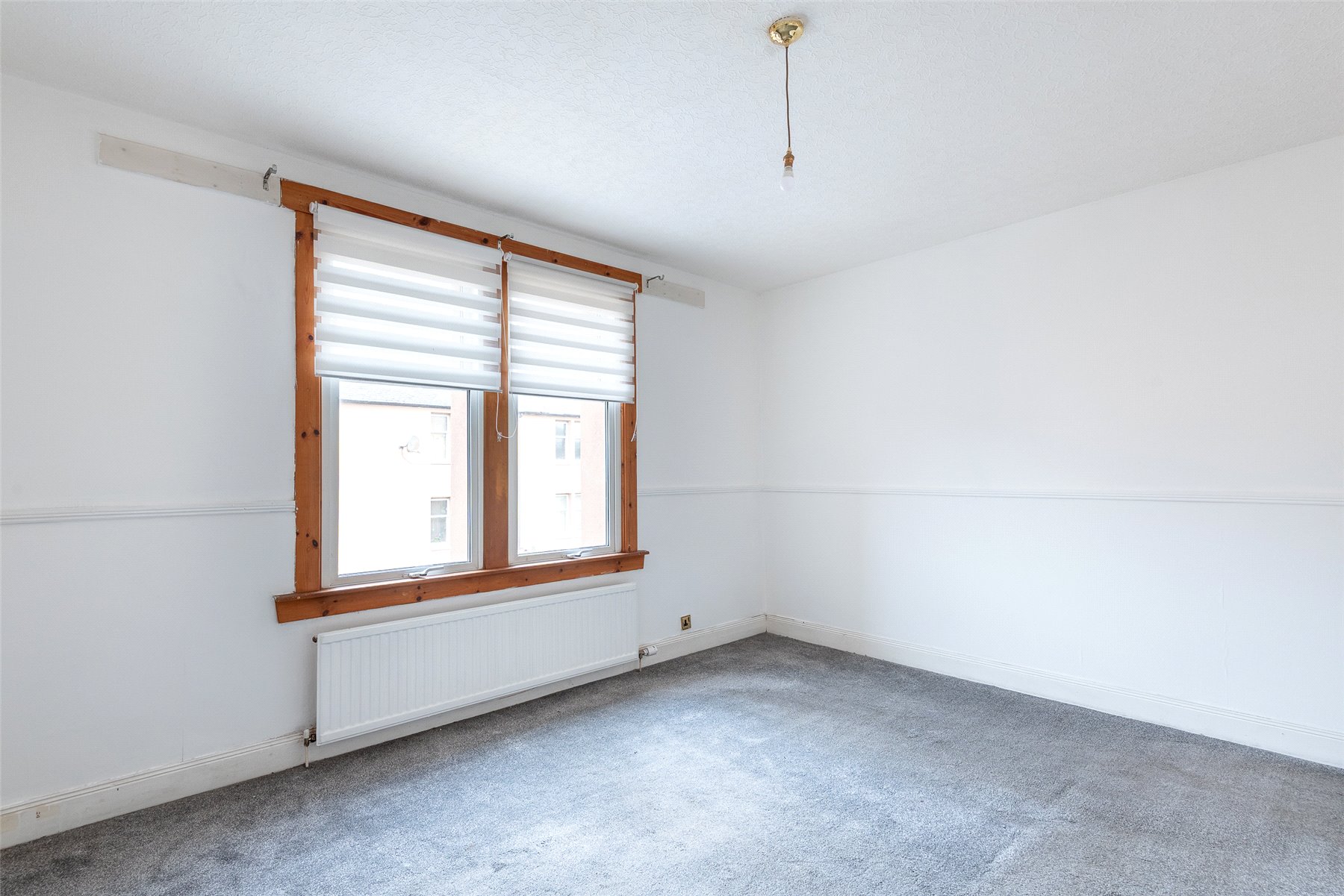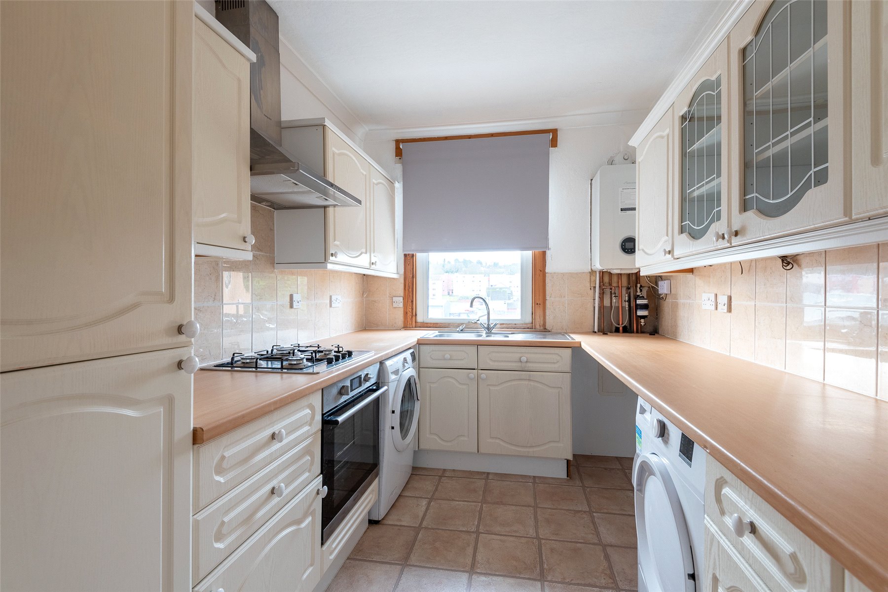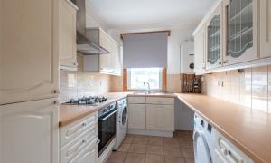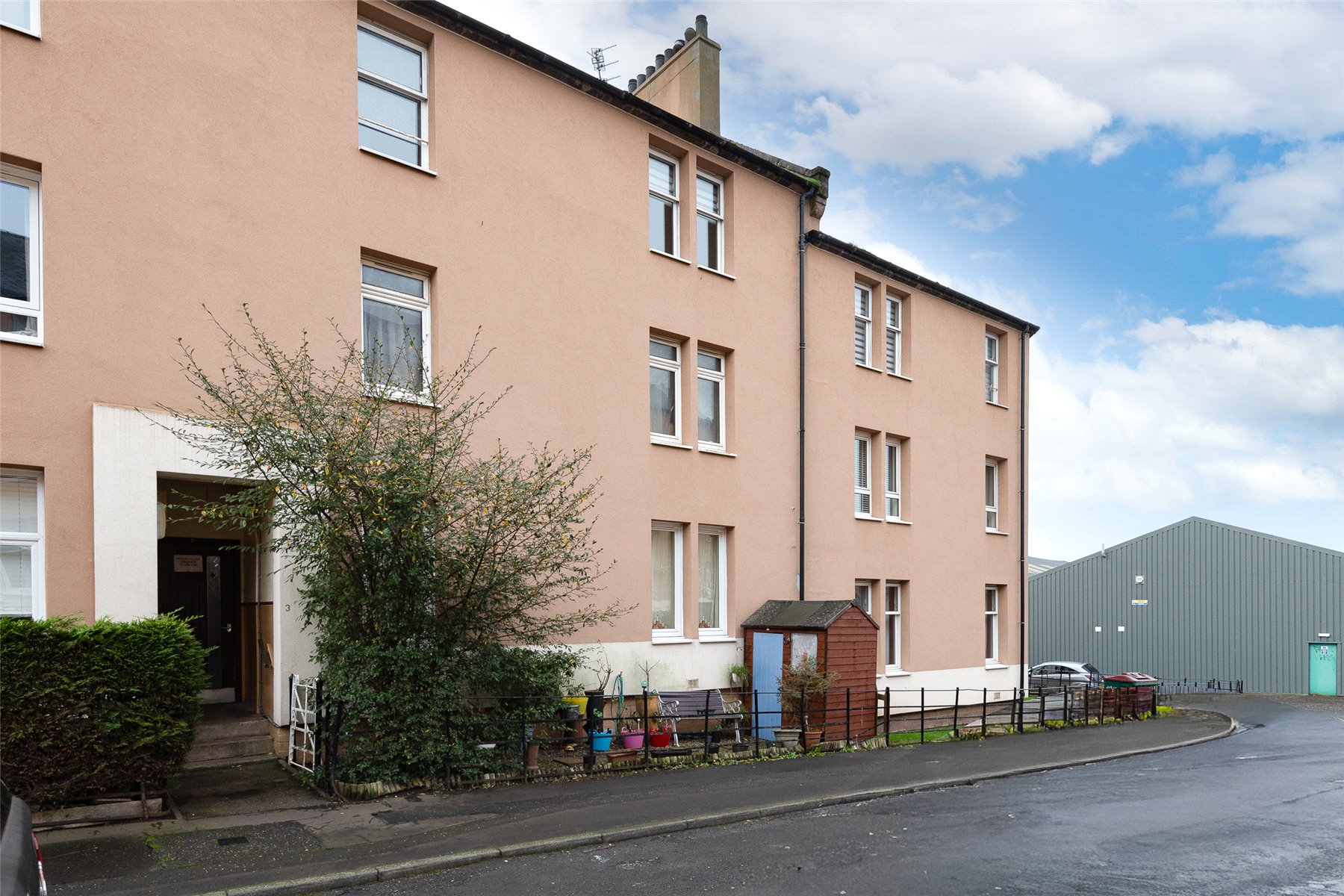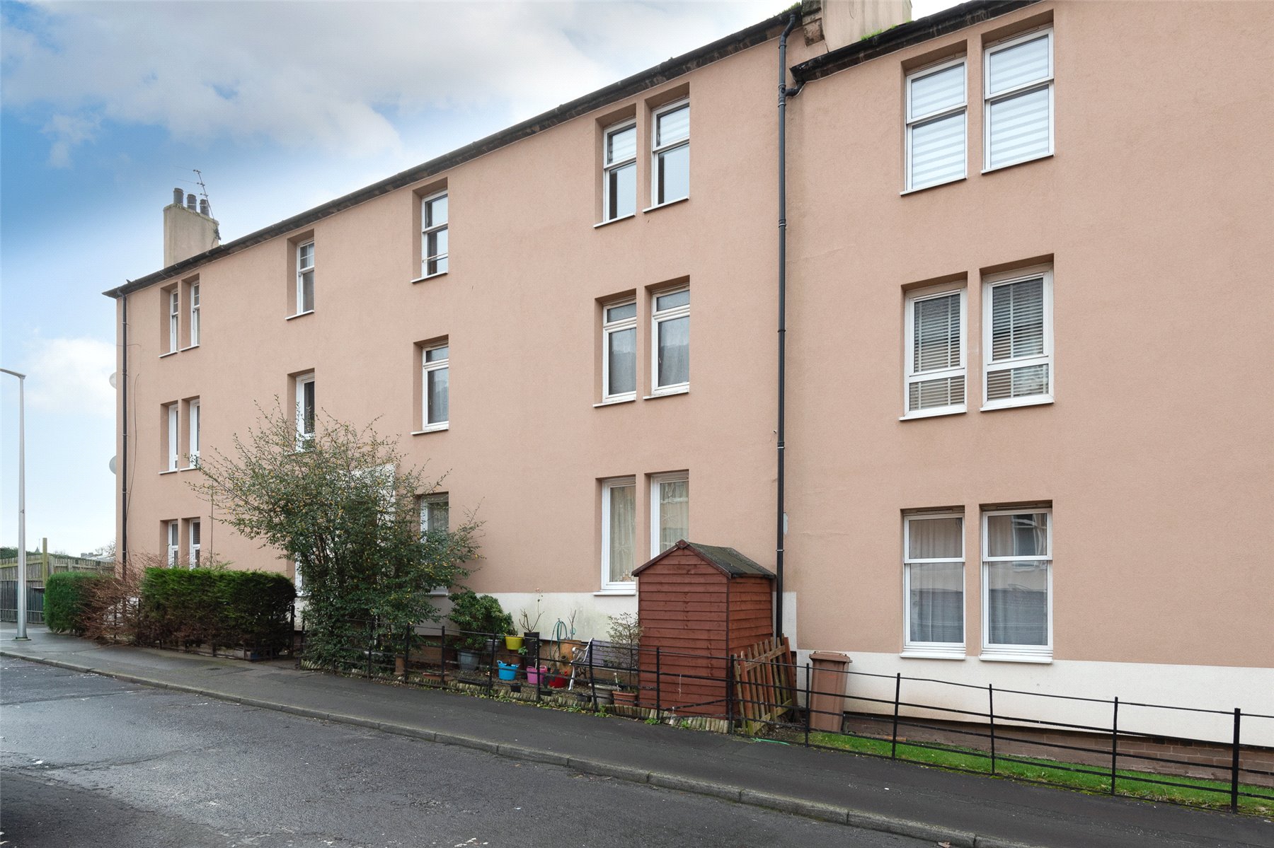 The well-proportioned accommodation comprises an entrance hall, bright lounge with fireplace and windows to the front, kitchen with integrated hob, oven, extractor hood, fridge and freezer, two bedrooms, one with fitted wardrobes and a shower room with thermostatic shower. Outside to the rear there is a private area of garden with garden shed, and a shared drying green.