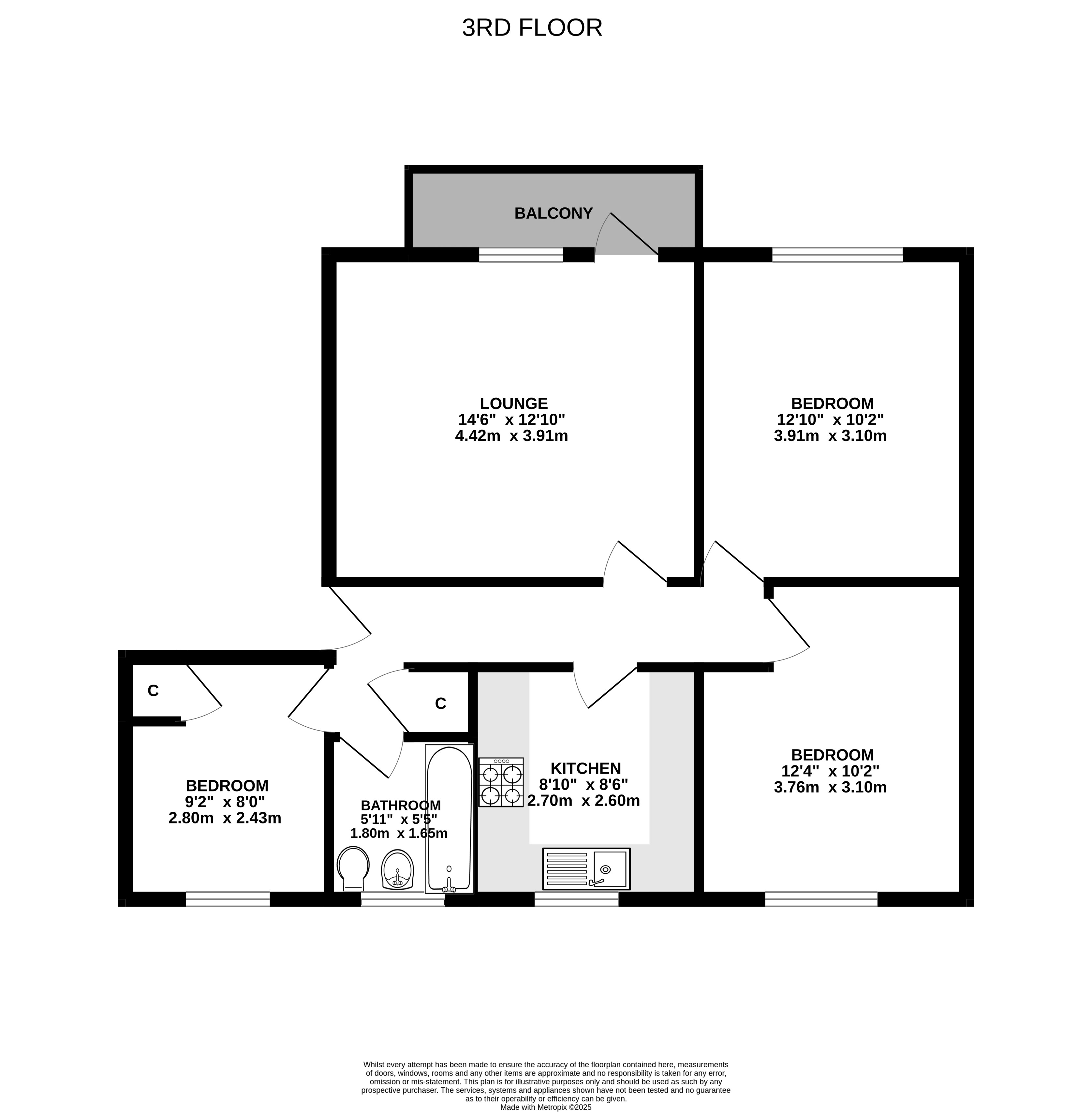 The property is offered to the market I move in condition and comprises: hallway and bright and spacious lounge with access to a balcony. There are three good sized bedrooms, fitted kitchen and family bathroom with shower over the bath. Benefits include double glazing, gas central heating and partially floored attic.
