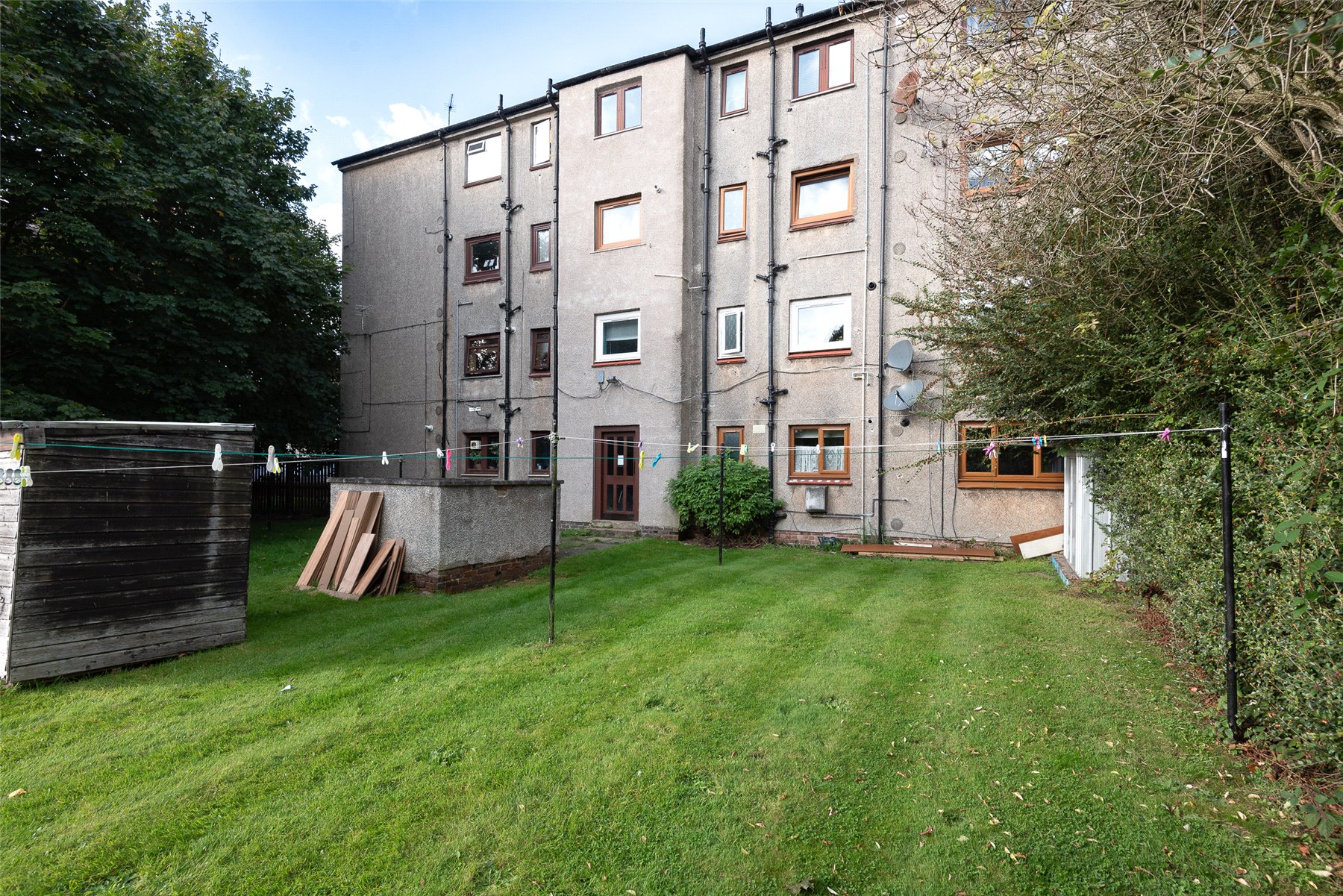 Externally there is a well maintained communal garden which is laid mainly in lawn and a private area of garden ground to the rear.