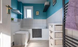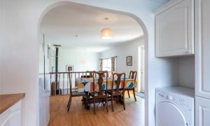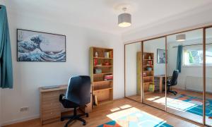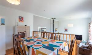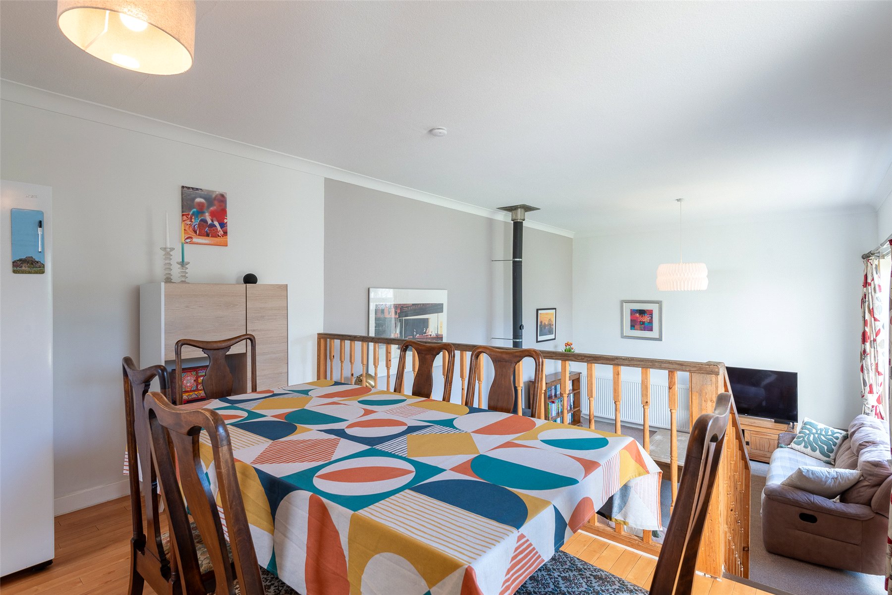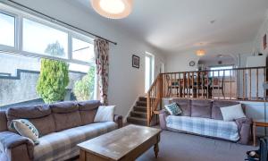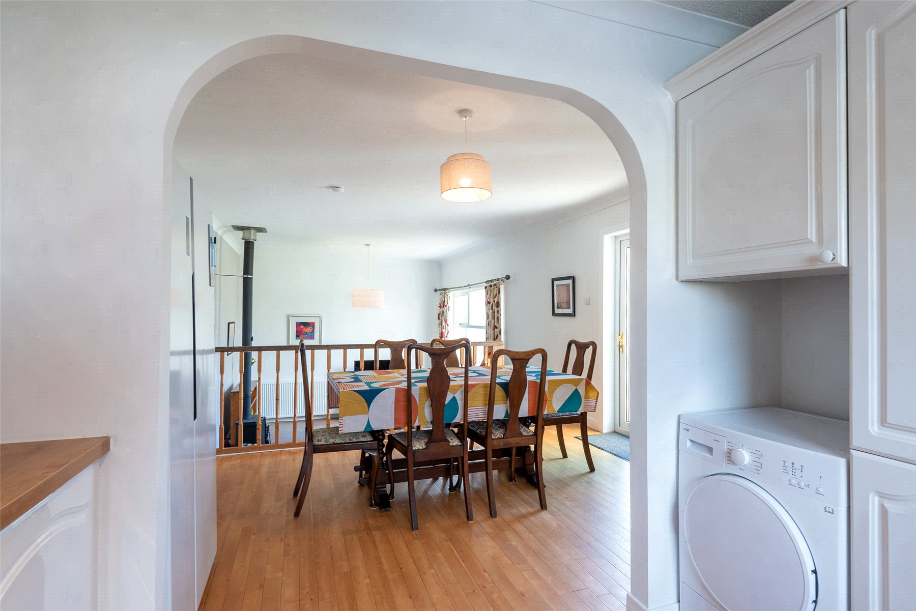 On entering the property through the hallway you will be drawn to the split level, open plan Lounge/Dining/Kitchen featuring a cosy log burning stove and a large west facing window flooding the room with natural light. There is a good sized double bedroom with a wall of fitted wardrobes currently used as a home office and a practical cloakroom/WC. Moving to the upper floor you will find two double bedrooms with the master offering a wall of fitted wardrobes and the modern family bathroom which features both a bath and shower.