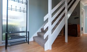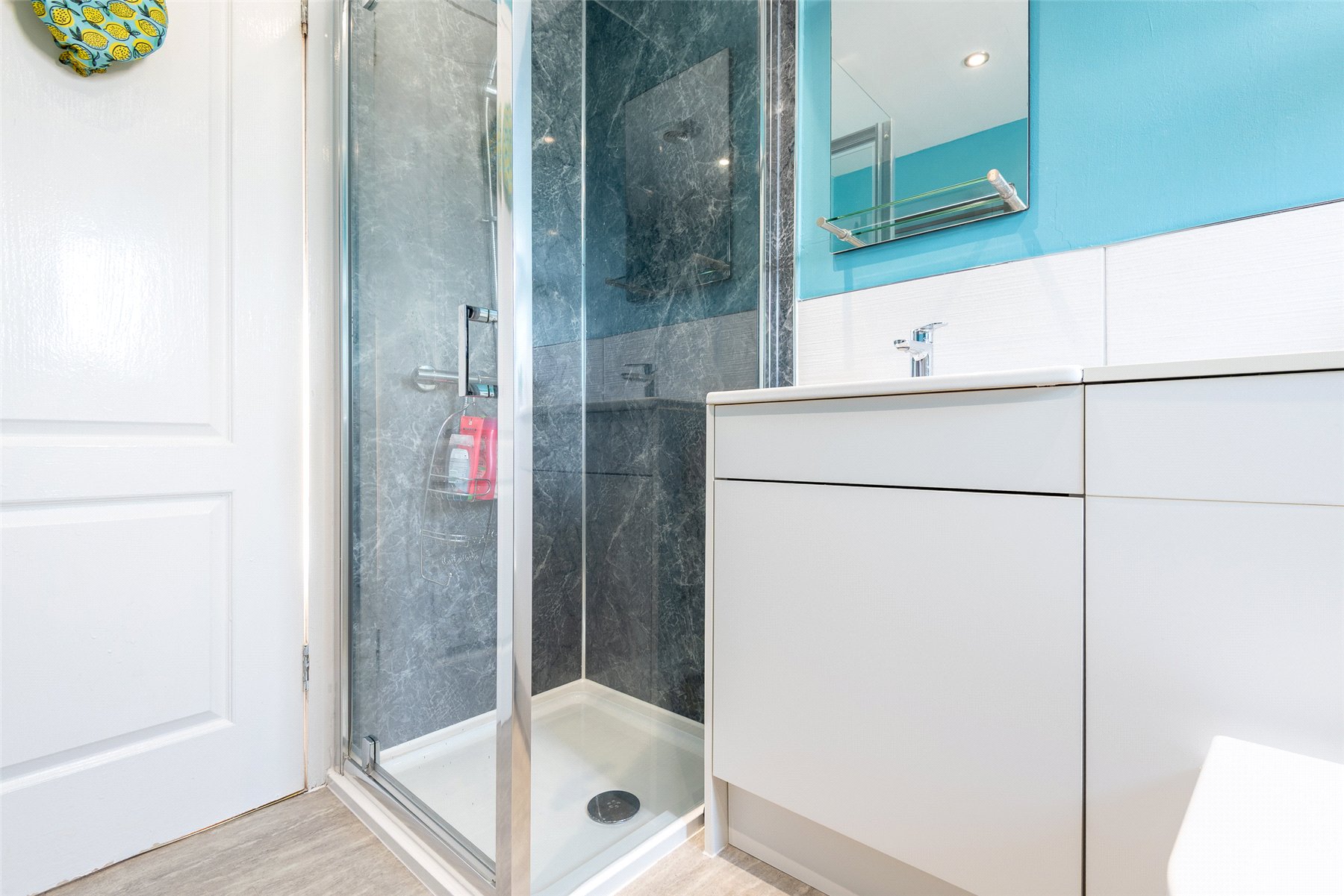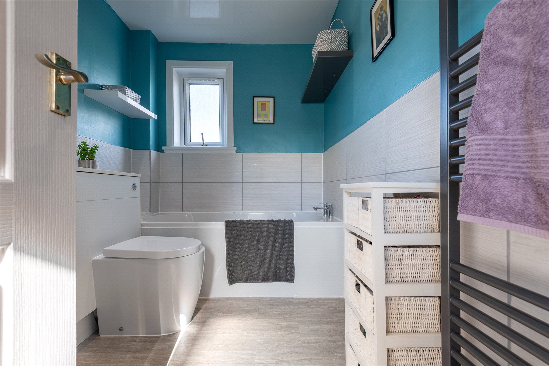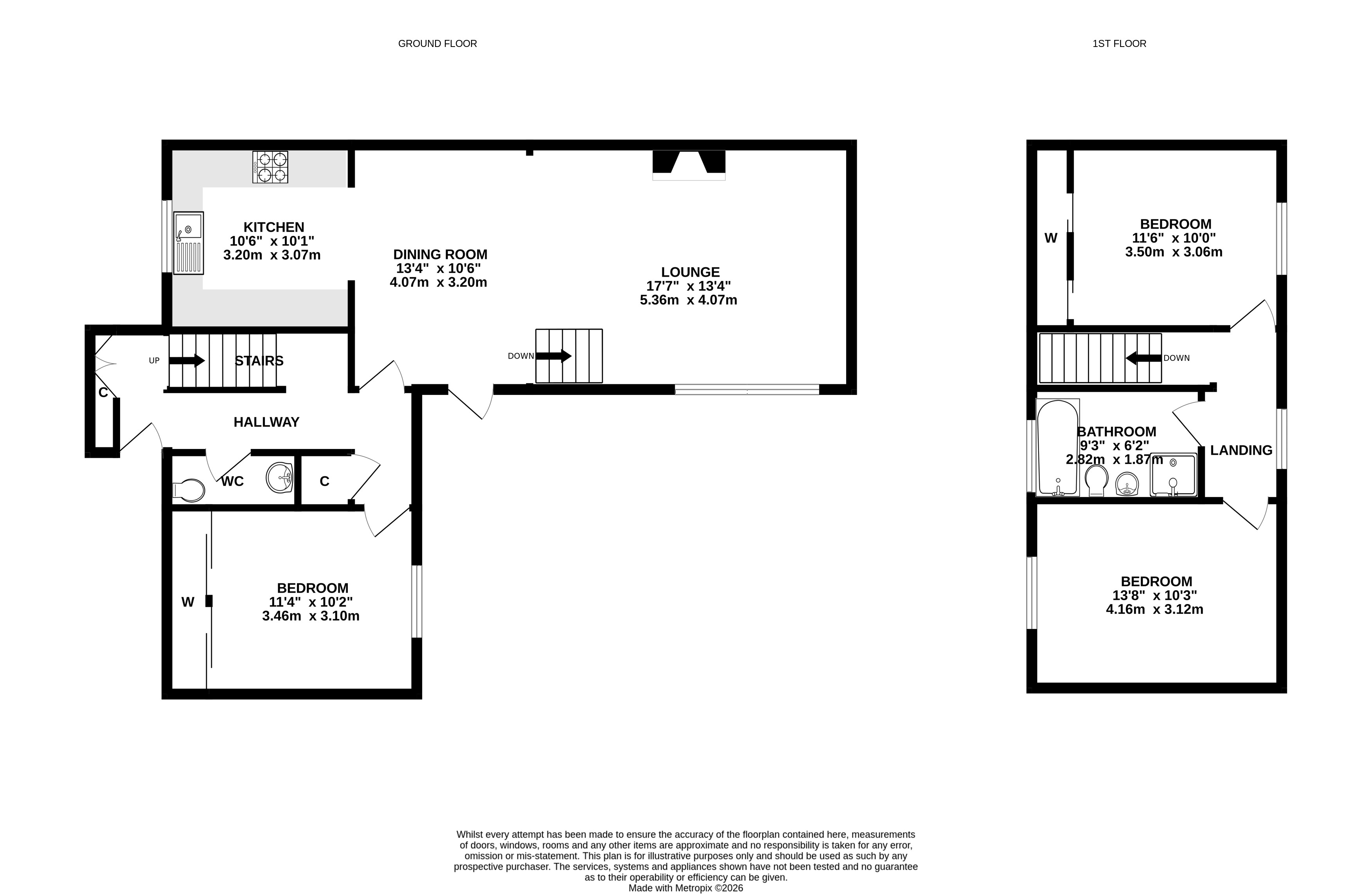 On entering the property through the hallway you will be drawn to the split level, open plan Lounge/Dining/Kitchen featuring a cosy log burning stove and a large west facing window flooding the room with natural light. There is a good sized double bedroom with a wall of fitted wardrobes currently used as a home office and a practical cloakroom/WC. Moving to the upper floor you will find two double bedrooms with the master offering a wall of fitted wardrobes and the modern family bathroom which features both a bath and shower.
