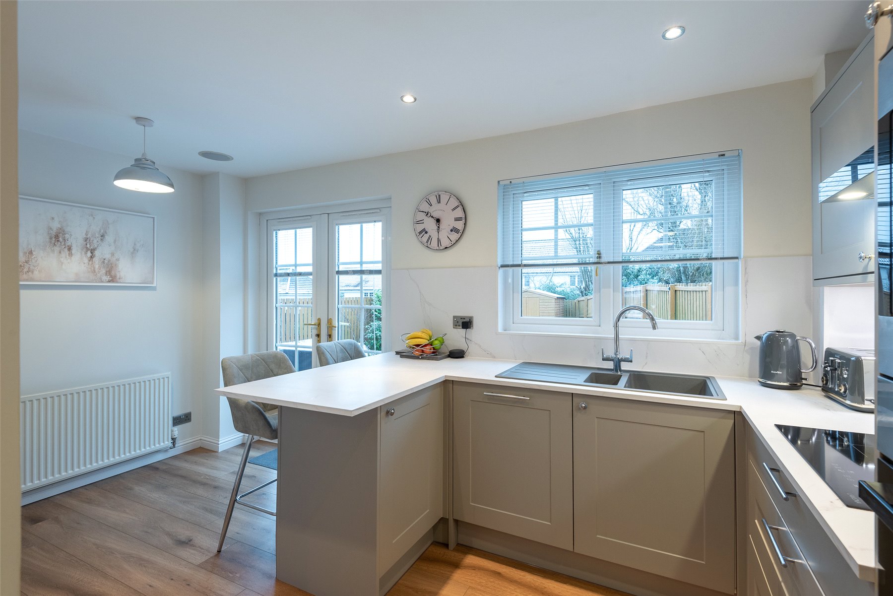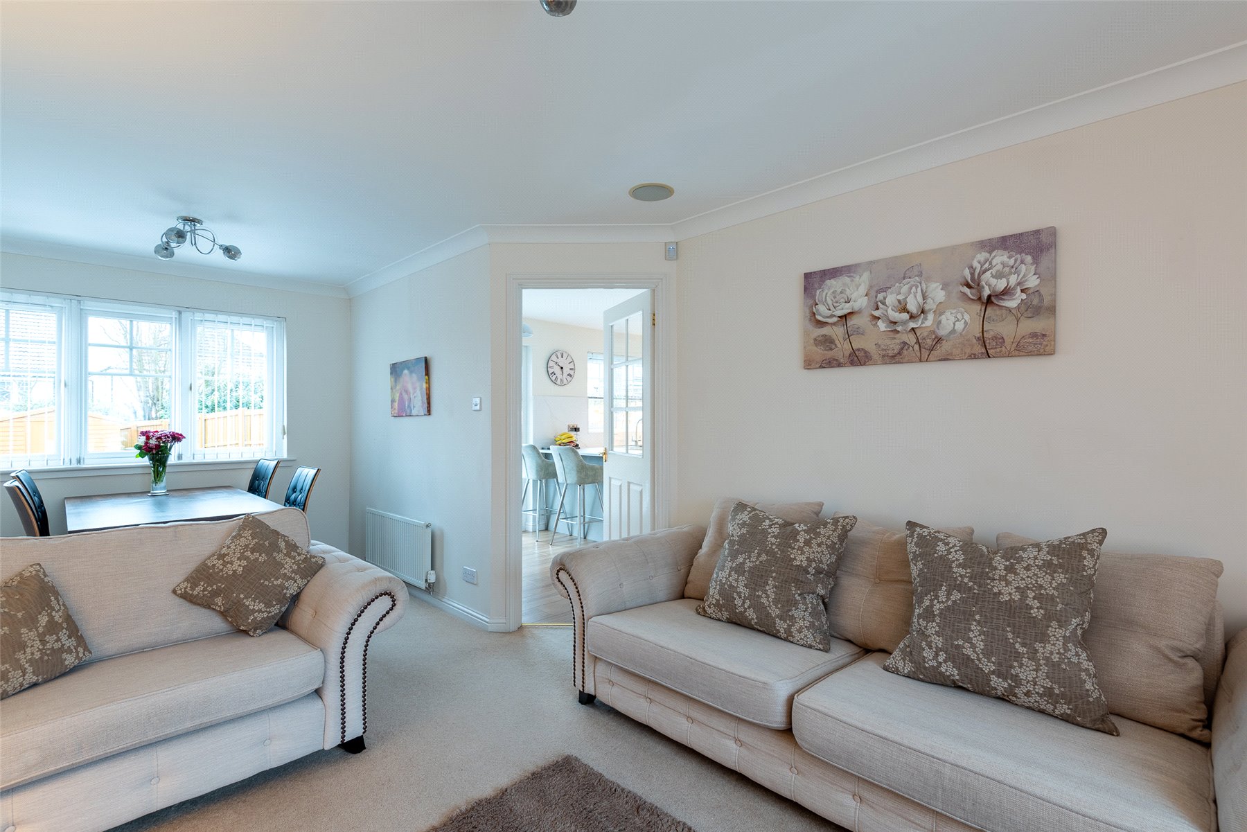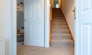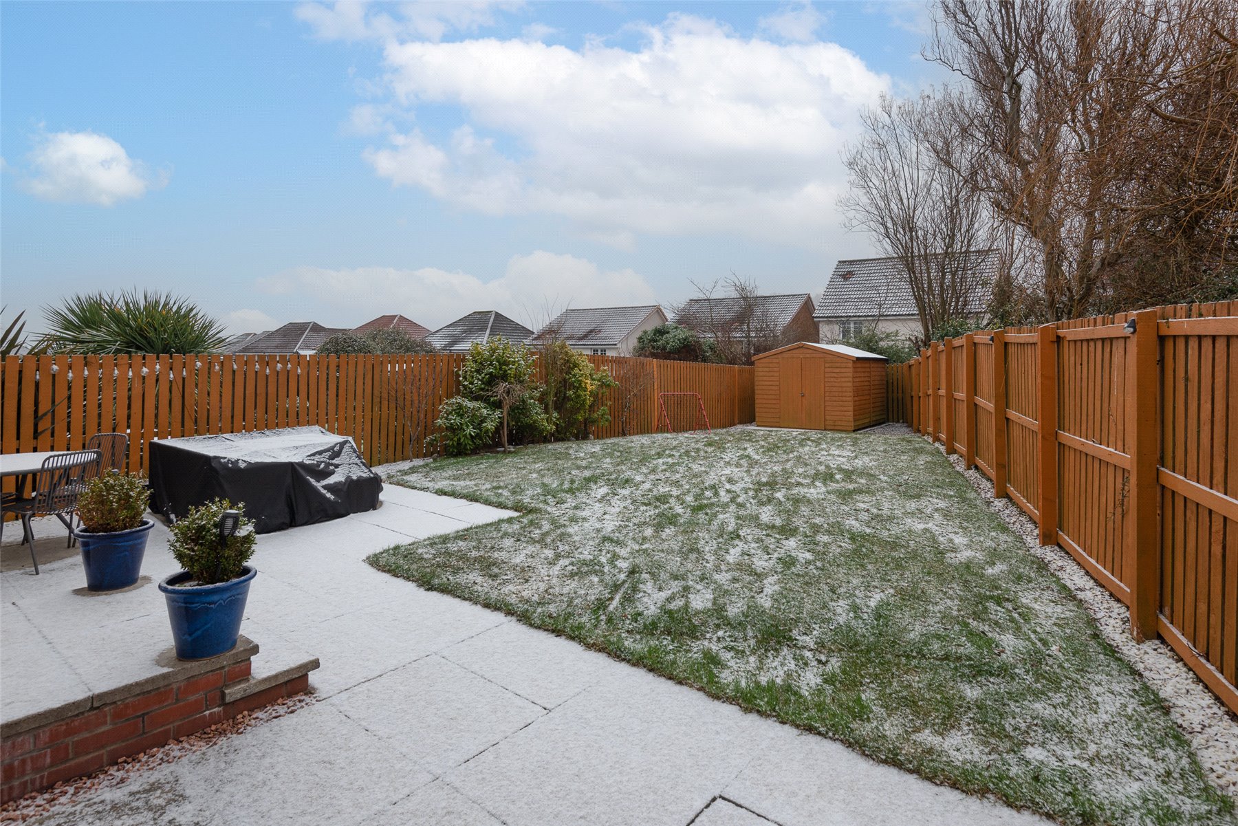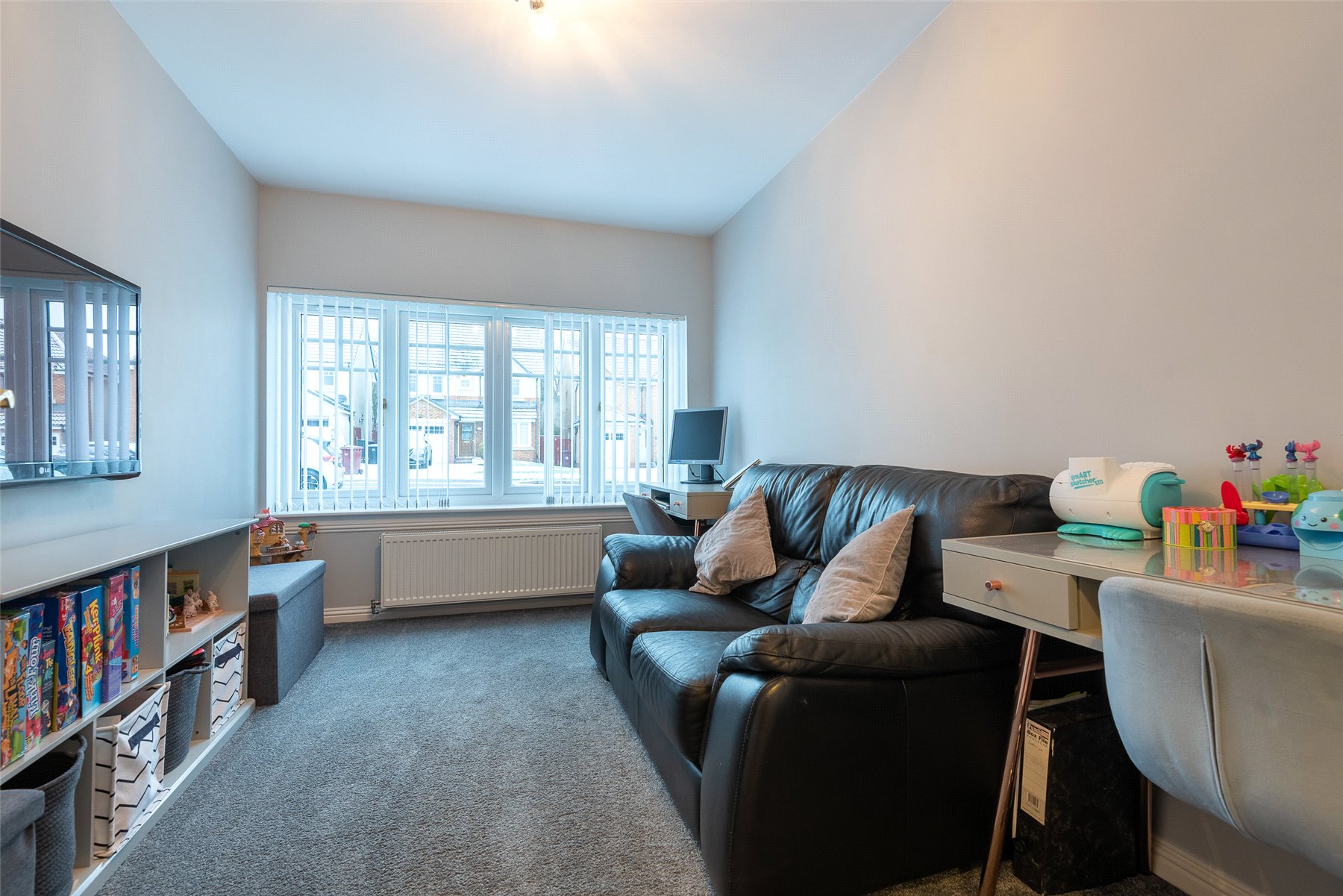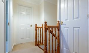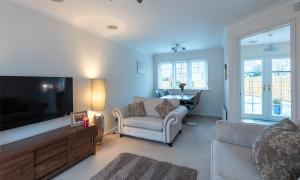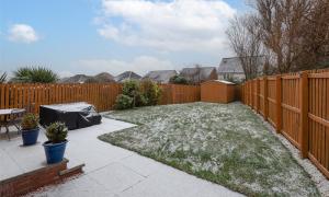 The accommodation comprises a hallway; lounge/dining room with patio doors to the garden; kitchen/breakfast room with integrated hob, oven, microwave, extractor hood, dishwasher, fridge and freezer; utility room with cupboard with plumbing and space for washing machine and tumble dryer; wc/cloakroom and playroom (which could be used as a 4th bedroom if required) on the lower floor. Upstairs there are three well-proportioned bedrooms, all with fitted wardrobes and one having the benefit of an en-suite shower room, and the family bathroom. Outside to the rear the south facing fully enclosed rear garden has lawn and paved patio perfect for outside entertaining, and a large garden shed. The front garden is laid with lawn and paved driveway providing off-street parking. Included in the sale are all fitted floorcoverings and blinds where fitted along with the integrated kitchen appliances as detailed and garden shed.