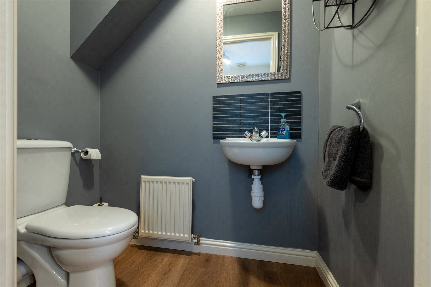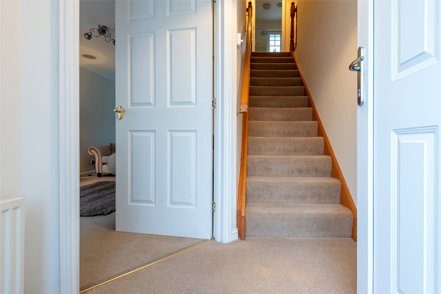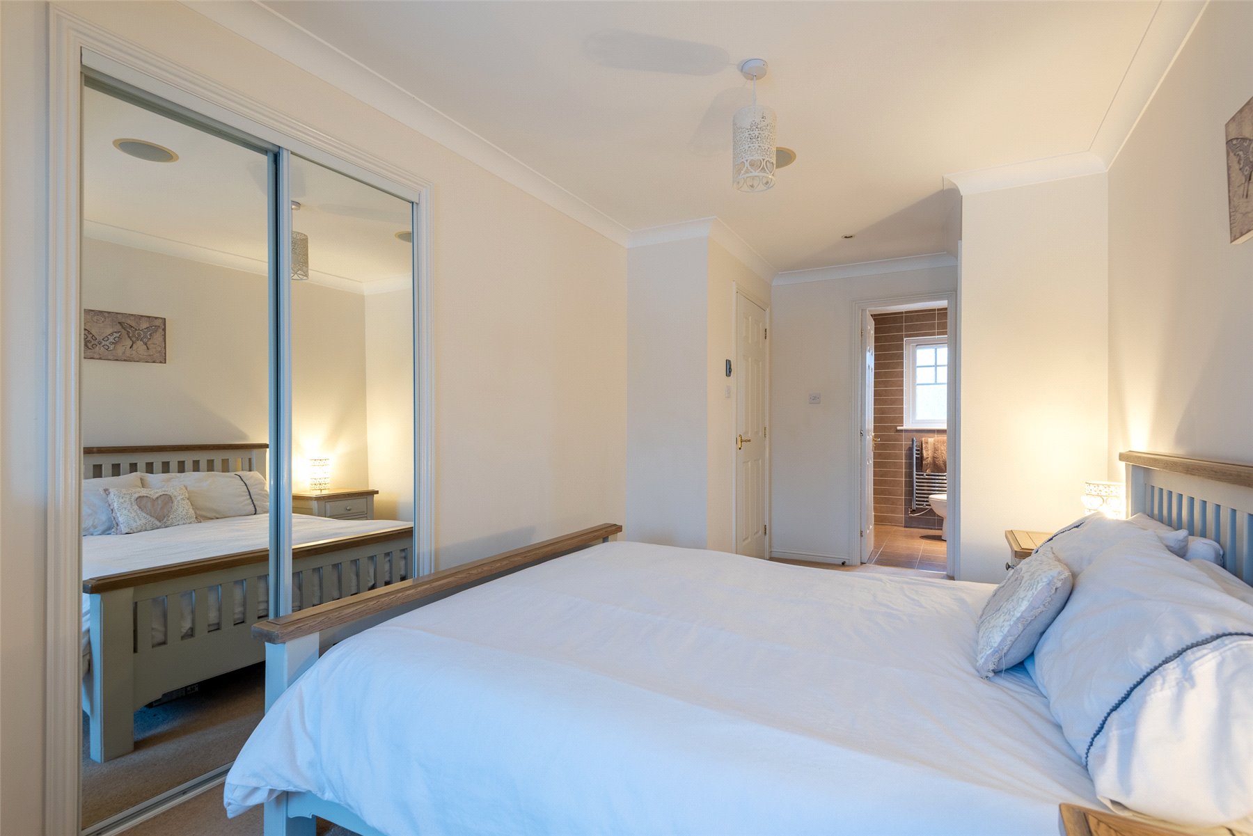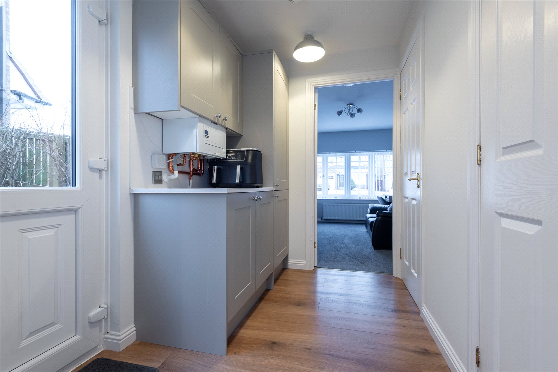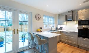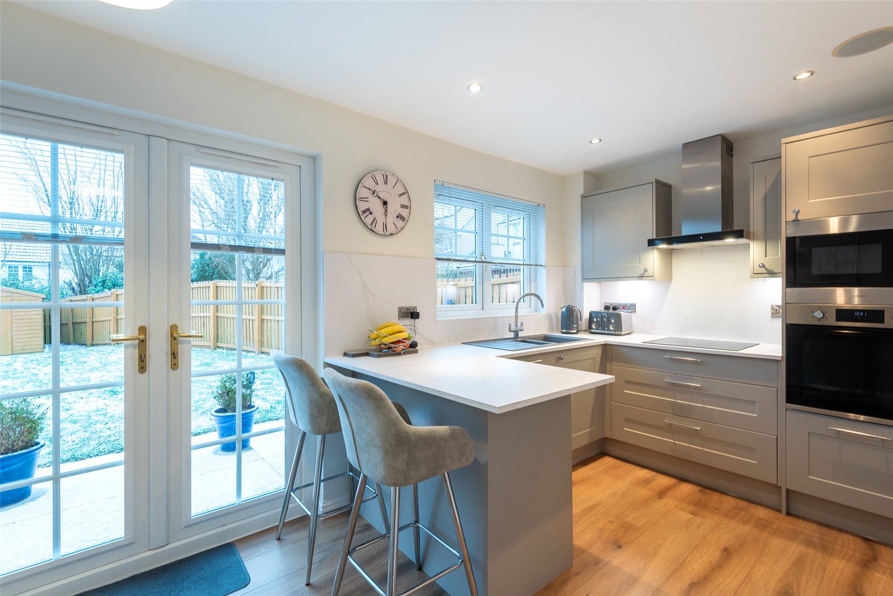The accommodation comprises a hallway; lounge/dining room with patio doors to the garden; kitchen/breakfast room with integrated hob, oven, microwave, extractor hood, dishwasher, fridge and freezer; utility room with cupboard with plumbing and space for washing machine and tumble dryer; wc/cloakroom and playroom (which could be used as a 4th bedroom if required) on the lower floor. Upstairs there are three well-proportioned bedrooms, all with fitted wardrobes and one having the benefit of an en-suite shower room, and the family bathroom. Outside to the rear the south facing fully enclosed rear garden has lawn and paved patio perfect for outside entertaining, and a large garden shed. The front garden is laid with lawn and paved driveway providing off-street parking. Included in the sale are all fitted floorcoverings and blinds where fitted along with the integrated kitchen appliances as detailed and garden shed.