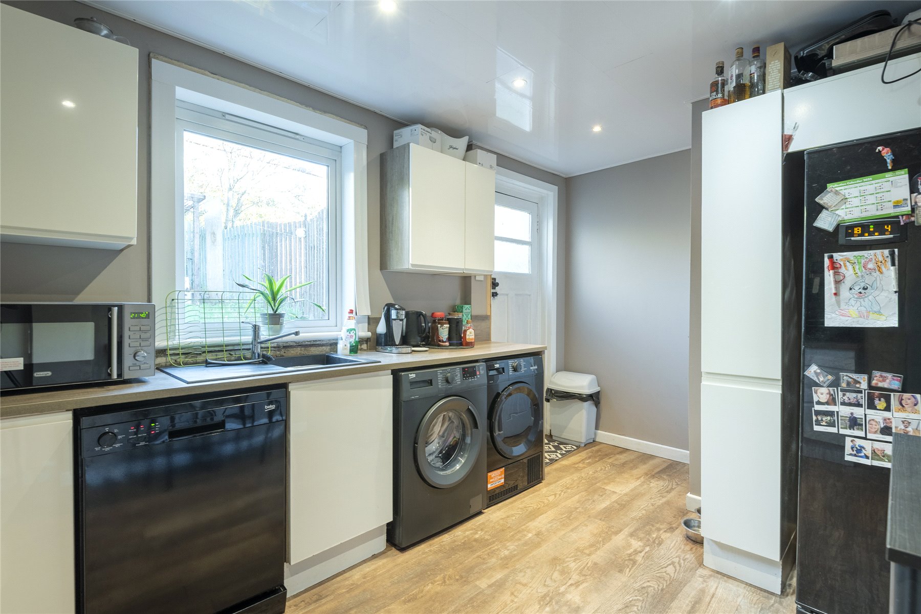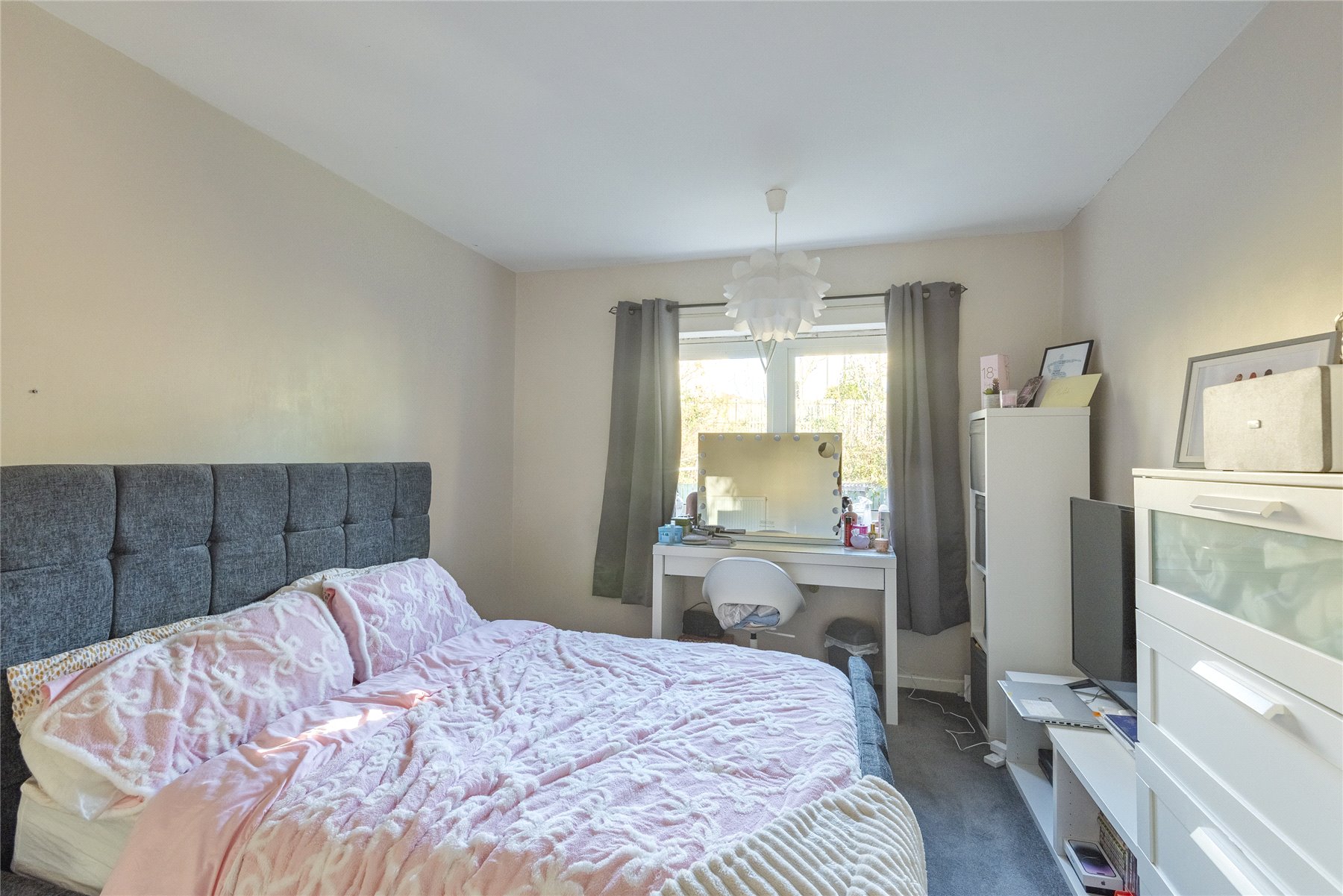 The well-proportioned accommodation comprises a vestibule, entrance hall, bright lounge with fireplace and windows to the front, kitchen with integrated hob, oven and extractor hood and space for an American style fridge-freezer, washing machine and table and chairs, all three bedrooms have fitted wardrobes and the bathroom has a thermostatic shower over the bath. Outside to the rear there is a private area of garden with lawn and paved patio.