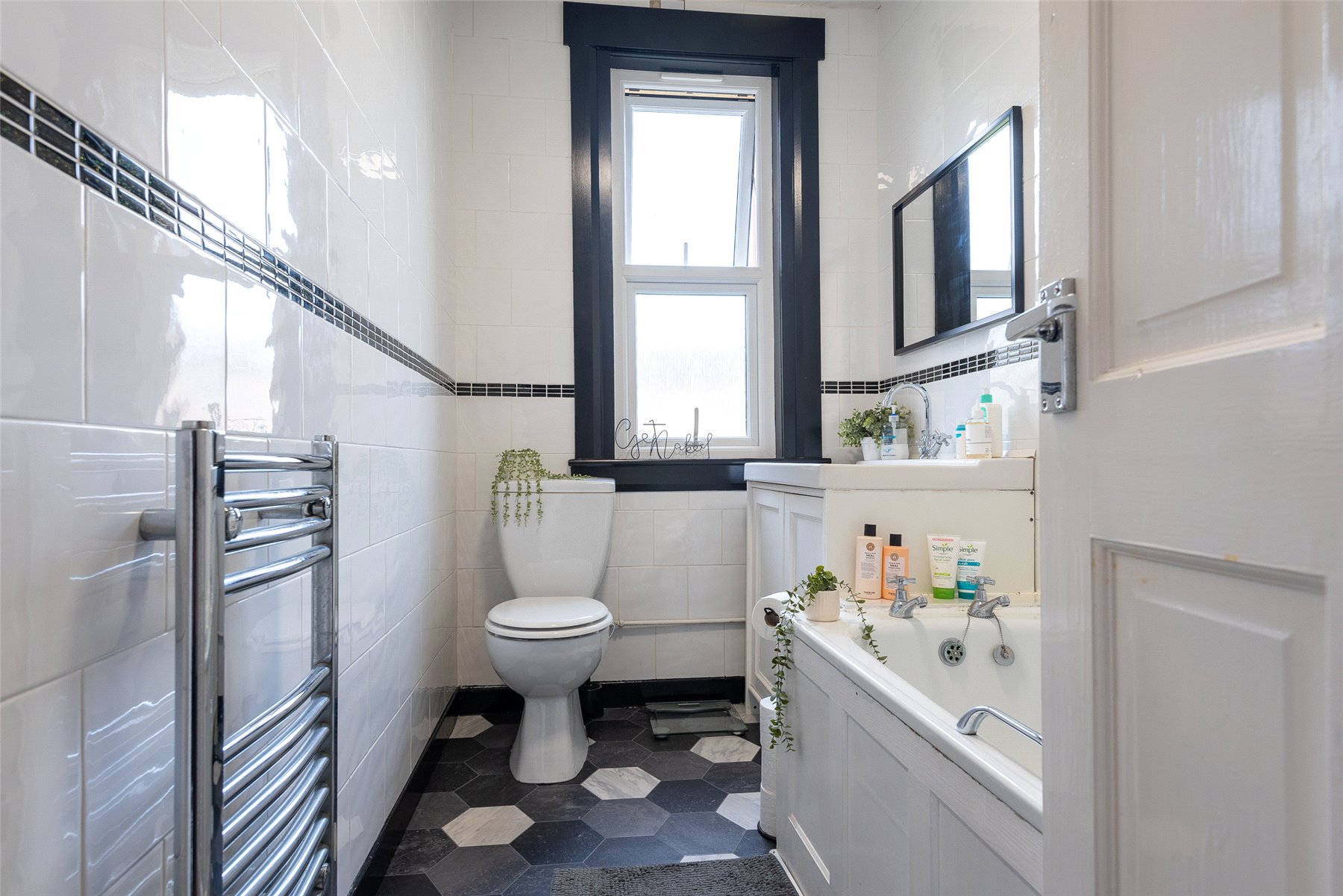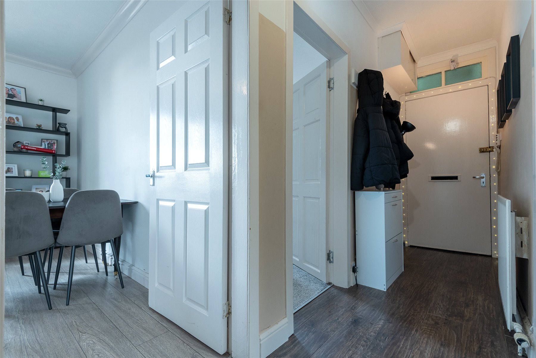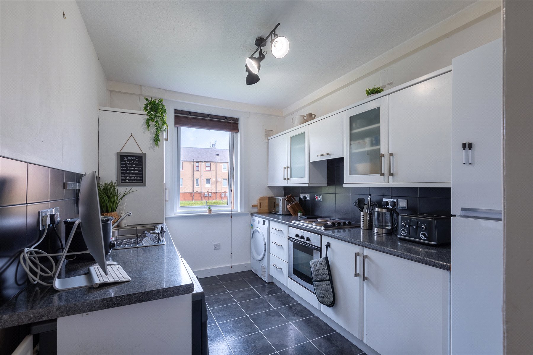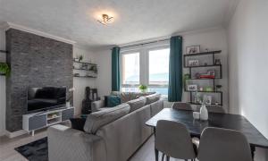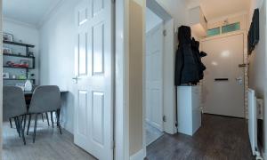 The accommodation is offered to the market in move-in condition and comprises a welcoming hallway with useful storage, a bright and spacious lounge, and a modern fitted kitchen. There are two generously sized double bedrooms, both presented to a high standard, along with a contemporary bathroom featuring quality tiling, a shower over the bath and a chrome towel rail.