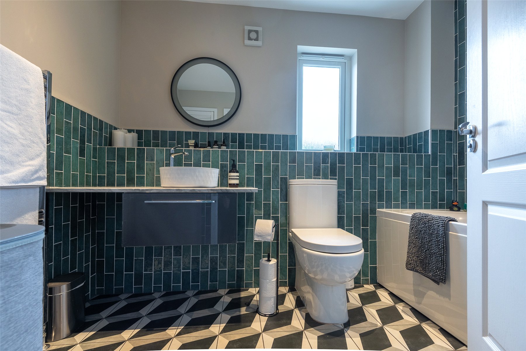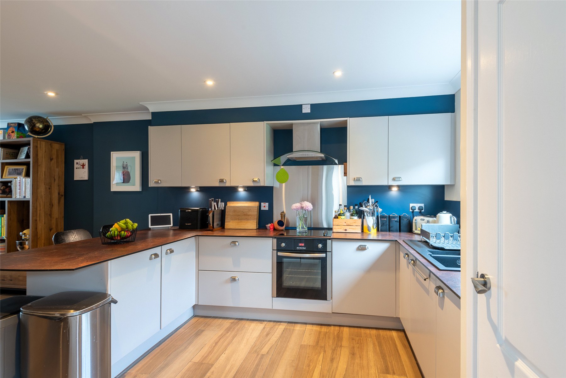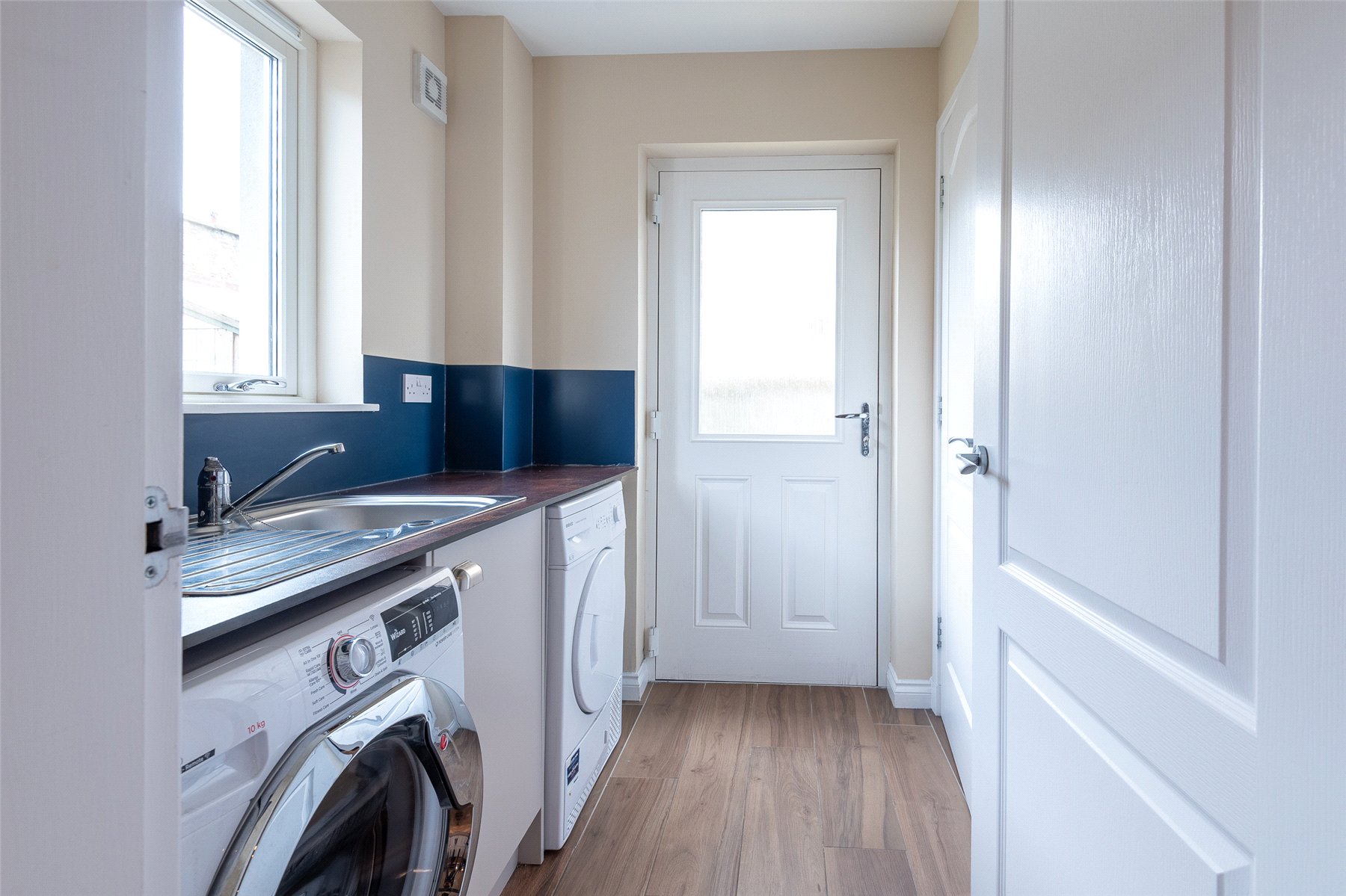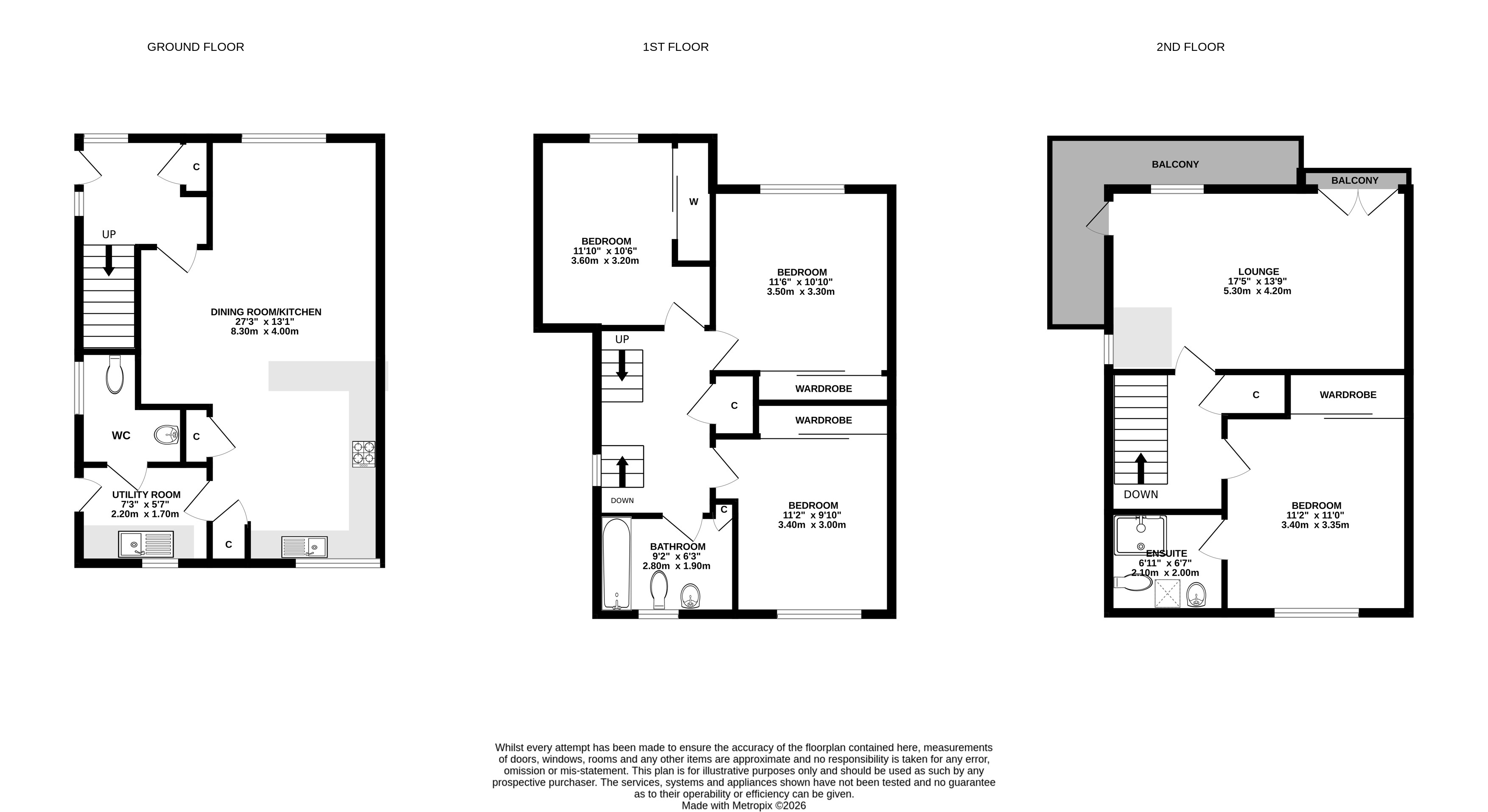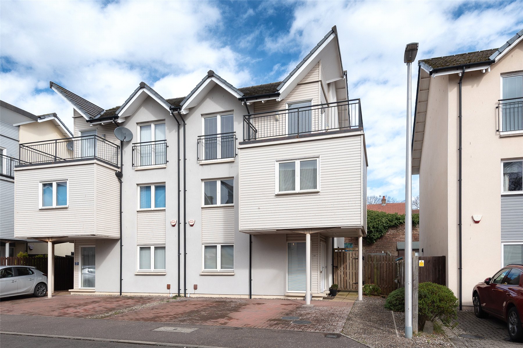 The accommodation is split over three levels and at ground level lies the impressive open plan kitchen/dining/sitting room, useful utility room and cloakroom/WC. The first floor comprises three double bedrooms all benefitting from fitted wardrobes and the family bathroom with shower over the bath. On the upper level lies the beautiful lounge with access to the balcony. The accommodation is completed with the principal bedroom with built in wardrobe and en suite shower room.