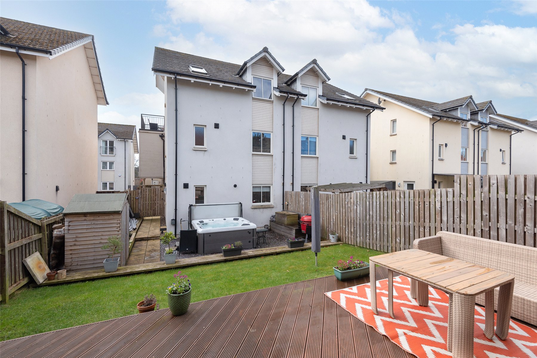 Externally at the front of the property lies off street parking for three vehicles. The main garden lies to the rear and is laid with a combination of lawn, patio and decking. The timber shed will also be included in the sale