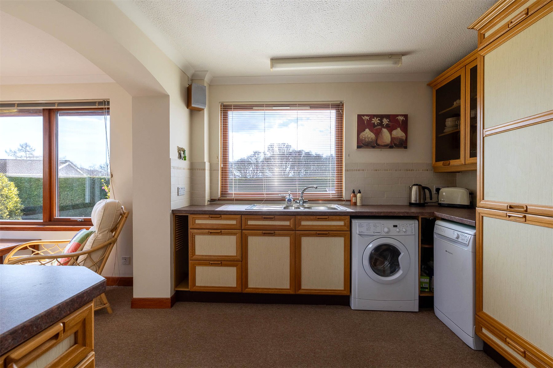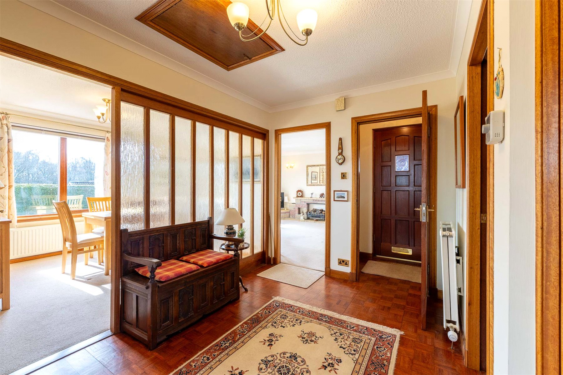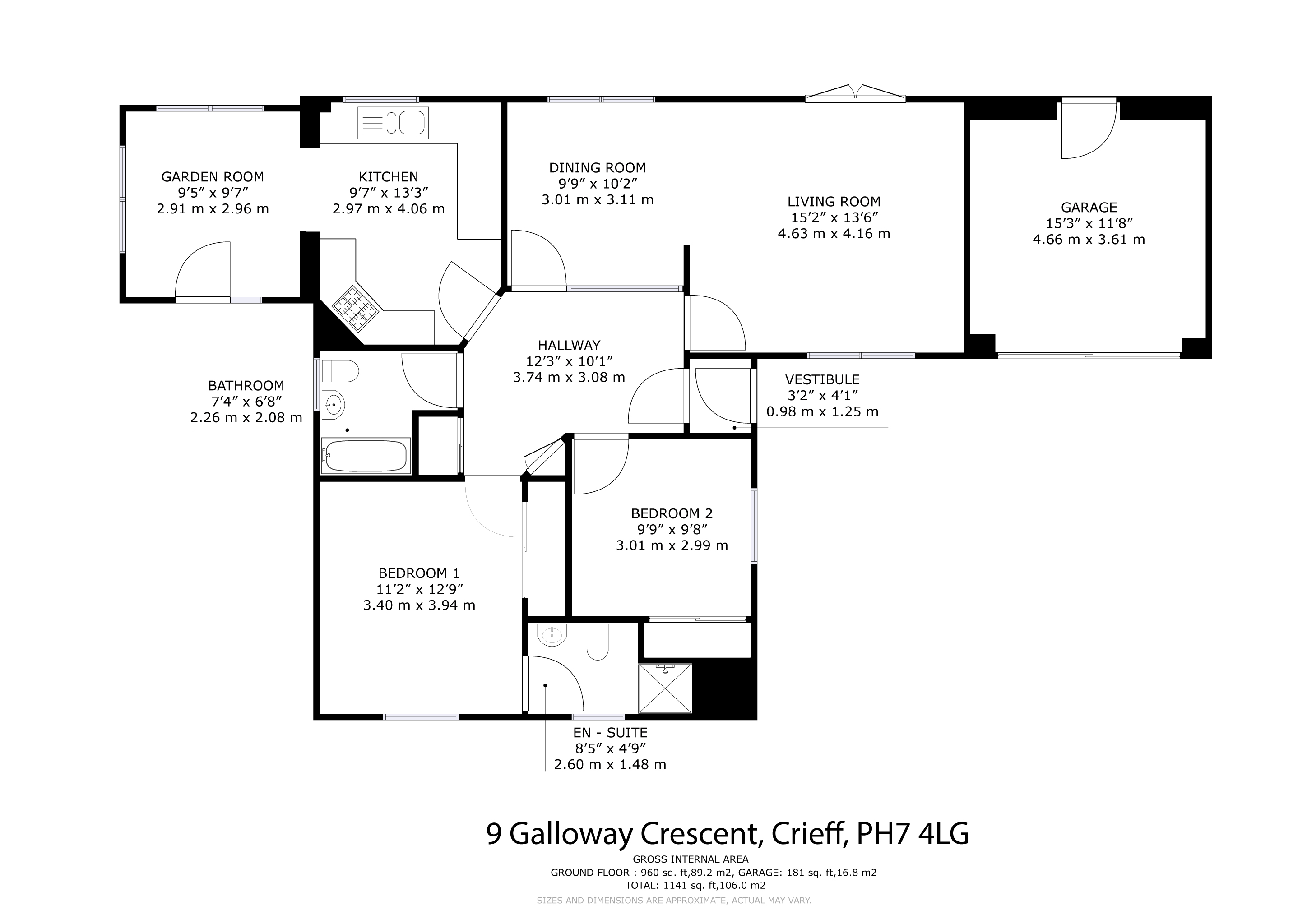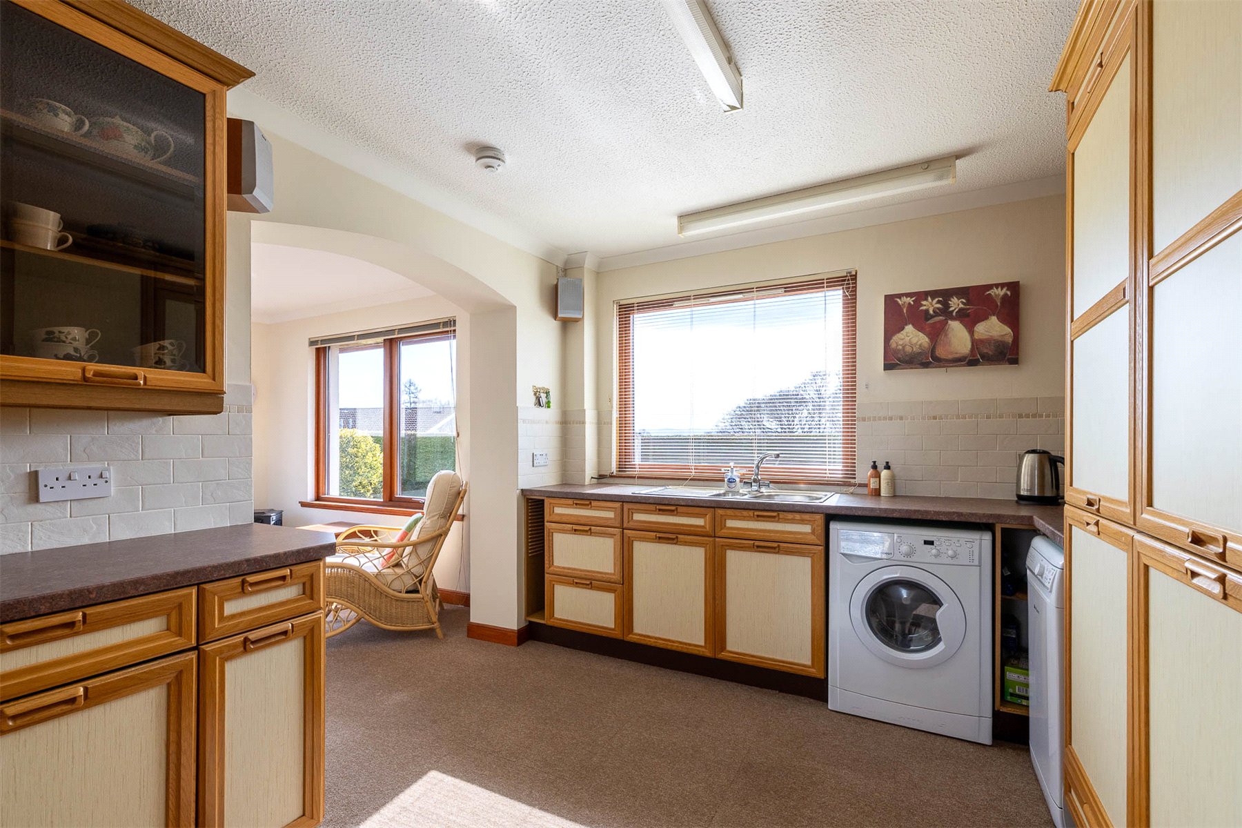 The layout includes a spacious hallway with useful storage and access to the floored attic, a bright rear-facing lounge with garden access and space for dining and a fitted kitchen with integrated appliances open to a second reception room. There are 2 bedrooms with built in storage, including 1 with an en suite shower room, and a family bathroom with bath, wash hand basin and WC. Gas central heating and double glazing ensure year-round comfort and efficiency. Externally, the property continues to impress. A gravelled driveway offers ample parking and leads to a single garage. The enclosed rear garden is south facing and offers good privacy and there are areas of lawn and colourful mature planting to both front and rear. Owned by the same family since its construction, number 9 is a rare opportunity to acquire a well-appointed and adaptable home in a prime location. Early viewing is strongly recommended. Crieff is a traditional Scottish market town set amidst Perthshire's stunning scenery. The attractive and bustling town centre supports a wide range of businesses offering the best of food and drink, clothing, gifts, crafts and arts.