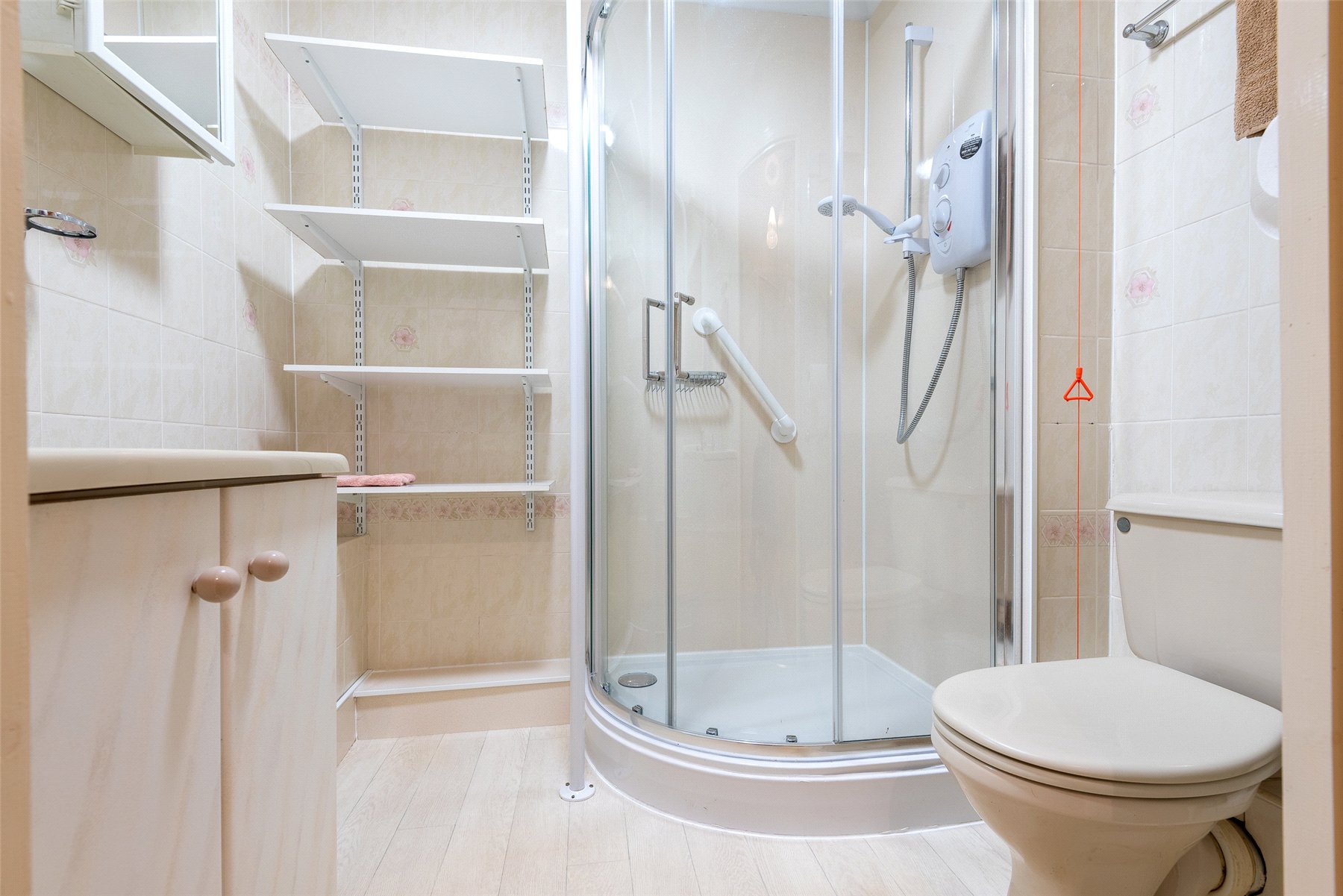 from a residents lounge, lift, laundry service, part time warden and pull cords in each apartment.