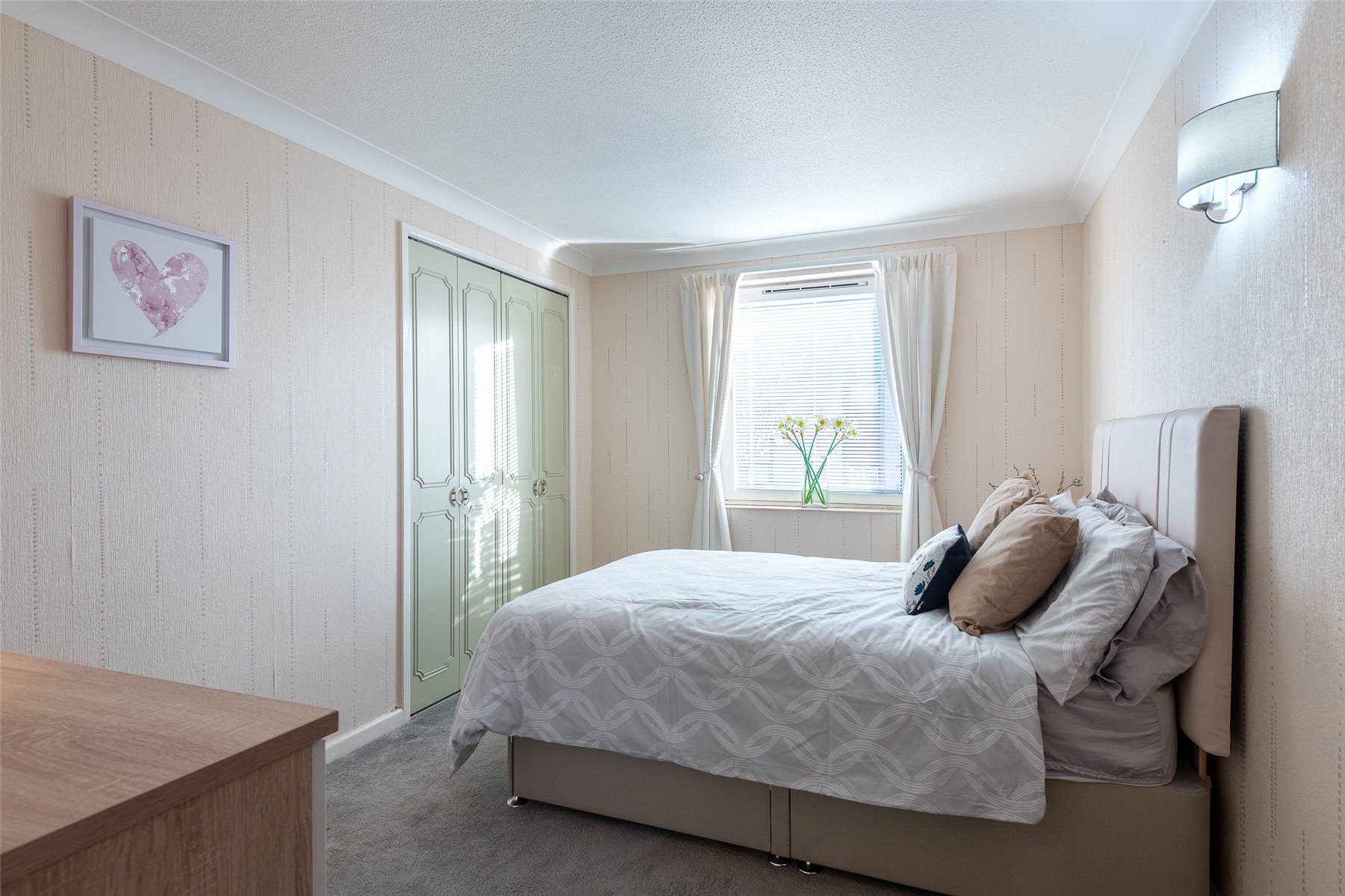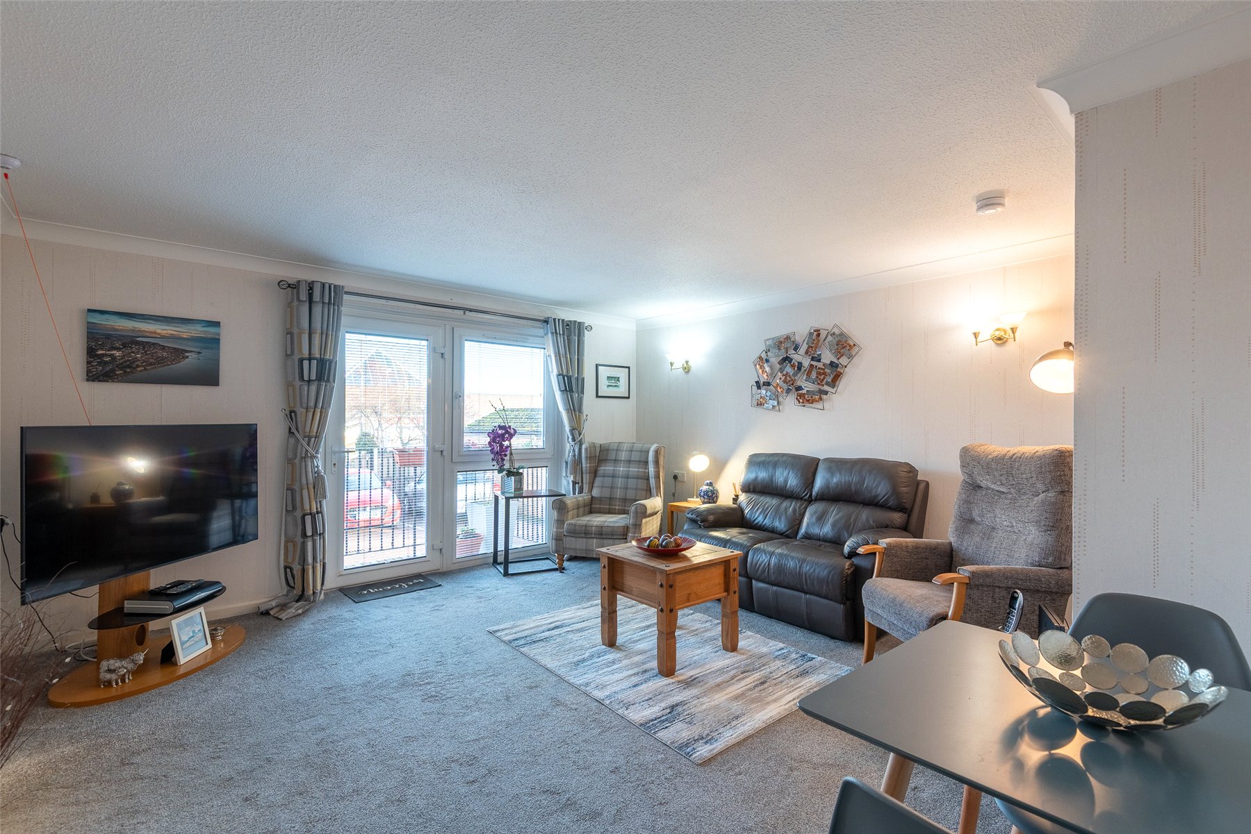 This spacious apartment is in move in condition and practical benefits include double glazing and electric heating. Included in the sale are all carpets, floorcoverings and blinds where fitted along with the integrated oven, hob, microwave and freestanding fridge freezer in the kitchen.