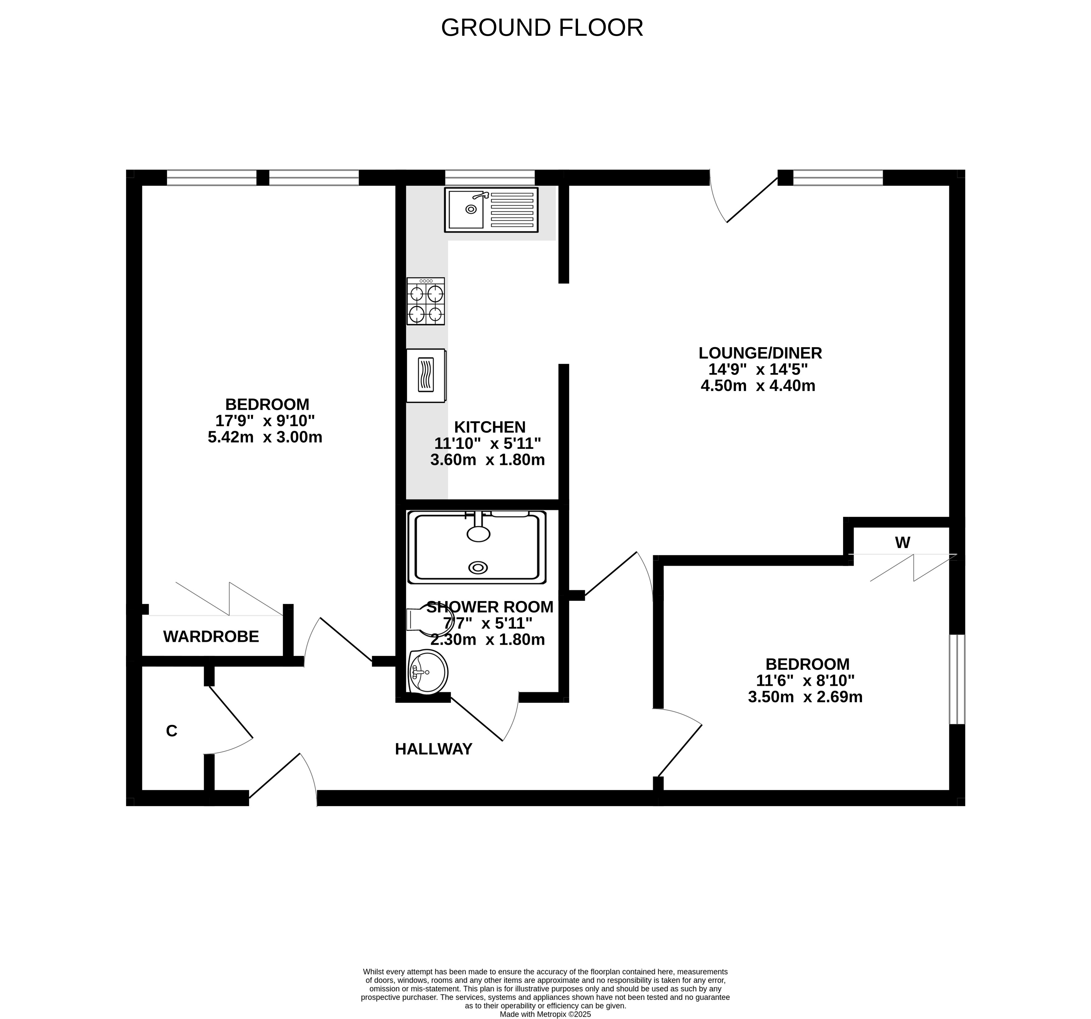 The accommodation comprises a delightful lounge with room for a dining table and chairs and a door leading to the rear car park, compact kitchen, two good sized double bedrooms both benefitting from fitted wardrobes and a shower room.